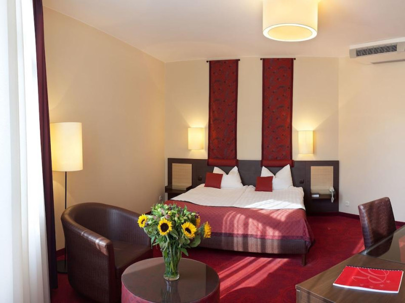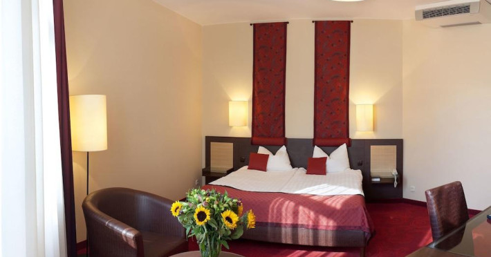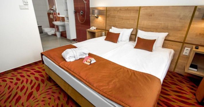 Rubin Wellness Conference Hotel offers excellent accommodation in the green- belt area at the Buda side of Budapest for leisure and business travellers. We also welcome those who would like to stay in a quiet and peaceful environment still near the city centre. The hotel is easily accessible from M1 and M7 motorways. The property has 85 spacious, stylish, air-conditioned hotel rooms, which are available in single, double/ twin, triple and quadruple use in the categories of Standard, Superior, Business and Junior Suite. All hotel rooms are equipped with LCD TV, radio, telephone, bath-robe, hairdryer and a safe. Most of the rooms have garden view terrace and balcony. The hotel has a unique garden with shady trees, promenades, benches and a fountain. It may provide excellent atmosphere for your wedding ceremony or outdoor reception.