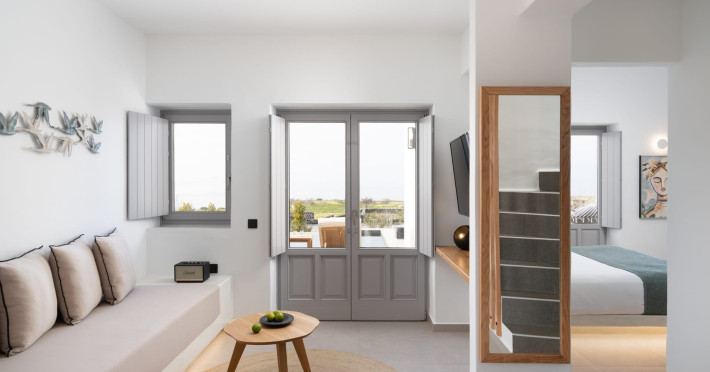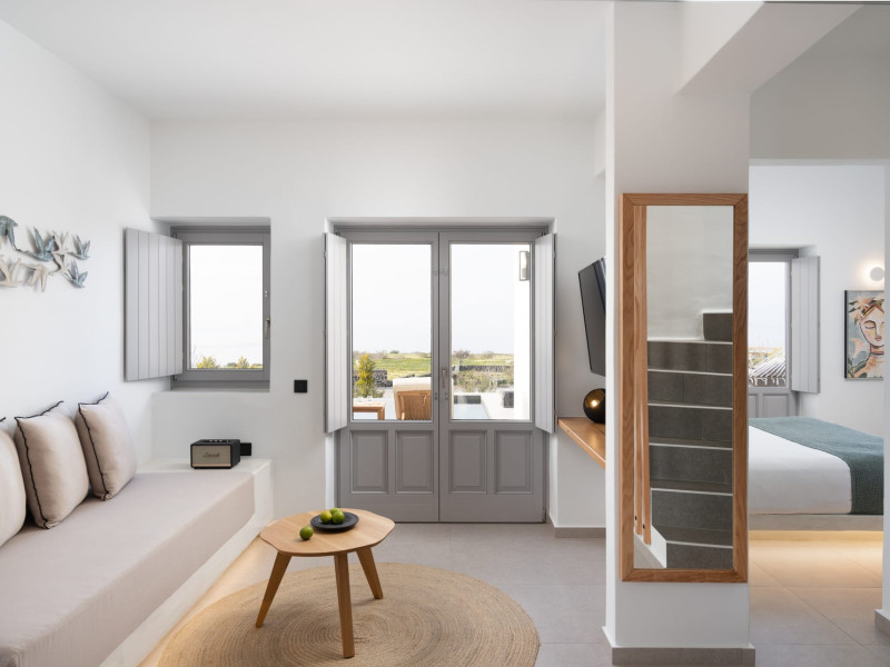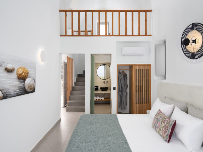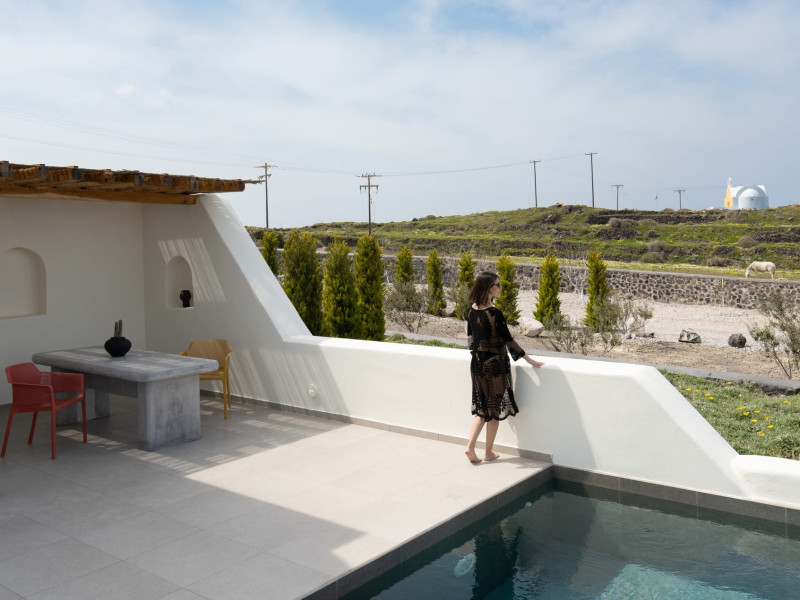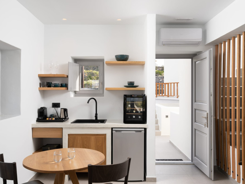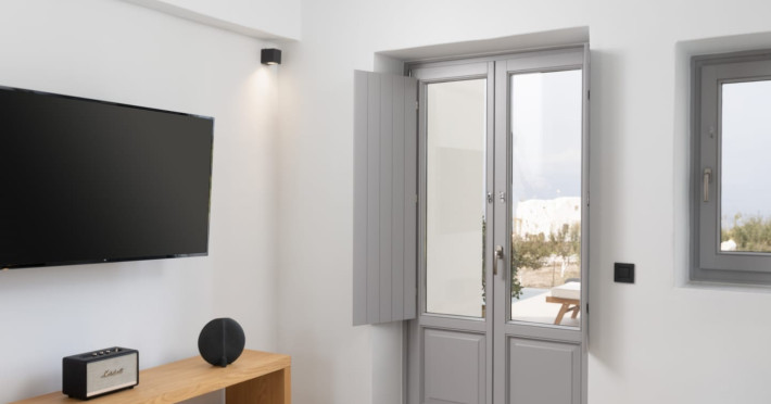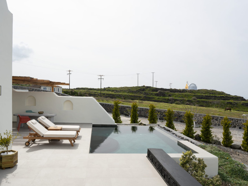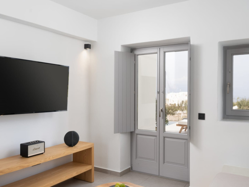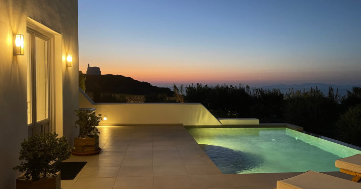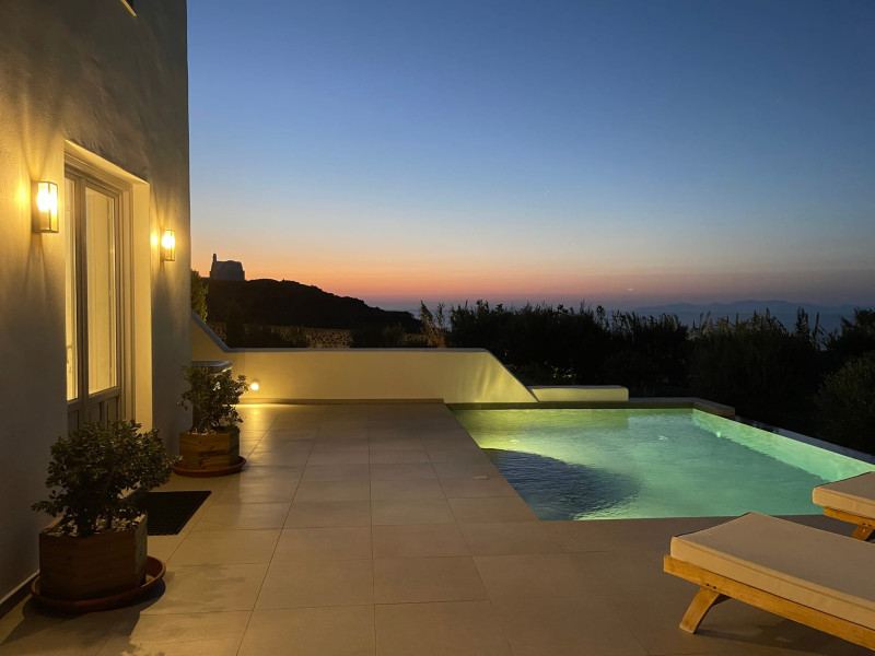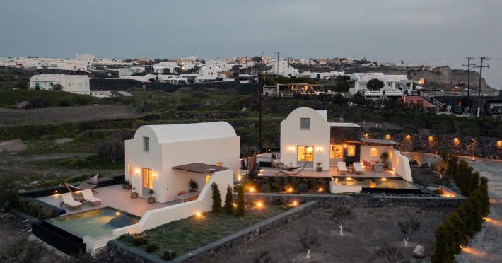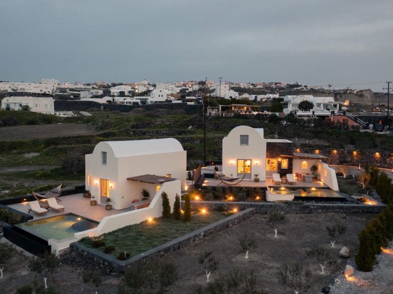 Saint John Villas located in Oia, just 450m outside from the center and the famous market and traditional paths of the village. In a quiet place, where only the birds can disturb relaxation.The property consists of 2 villas. Each villa has bedroom with king sized beds, living room with indoor high quality furnitures and sofa bed, private pool, terrace with sunbeds and outdoor furnitures, nespresso coffee machine, 50inch TV with netflix and youtube application, marshall audio HiFi, free high speed WiFi, safe box, hair dryer.High quality sink with full equipment of plates, spoons, forks and knives, coffee and tea cups.Bathroom with high quality amenities