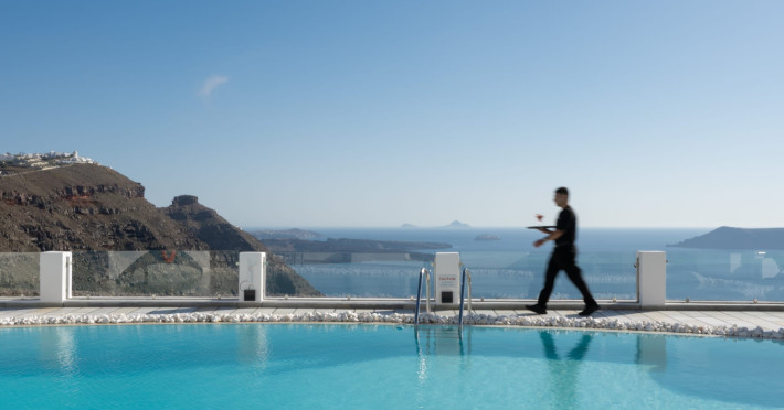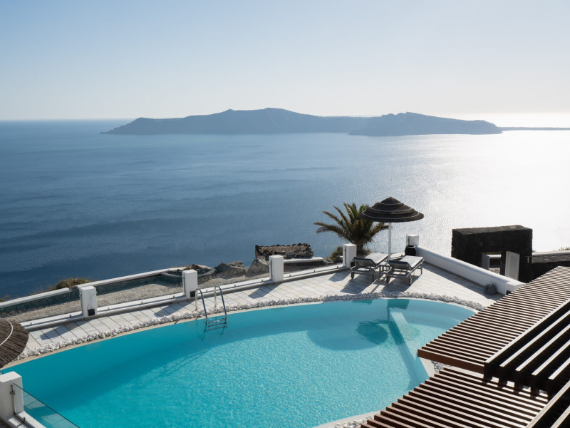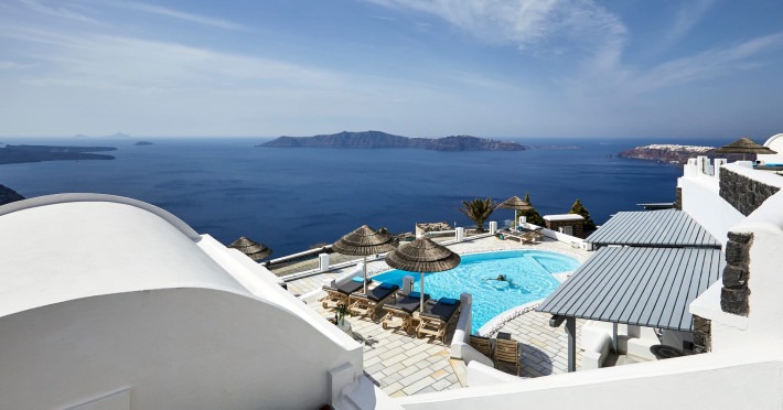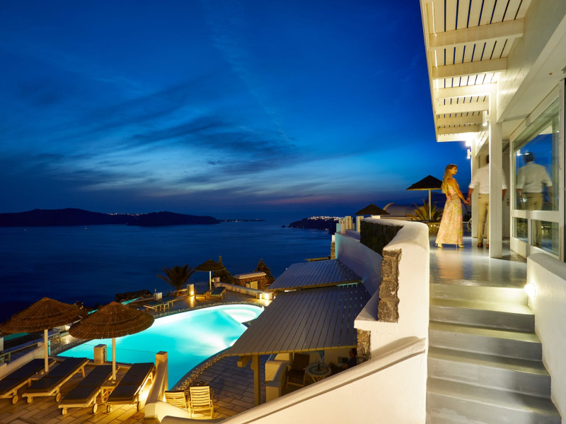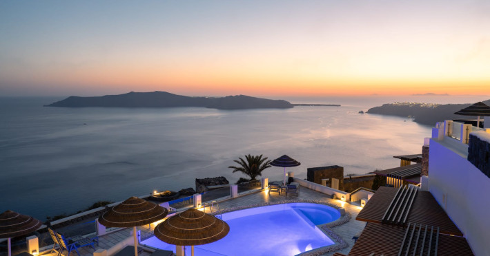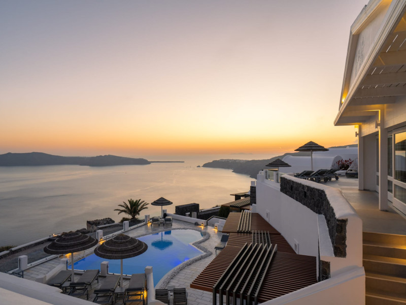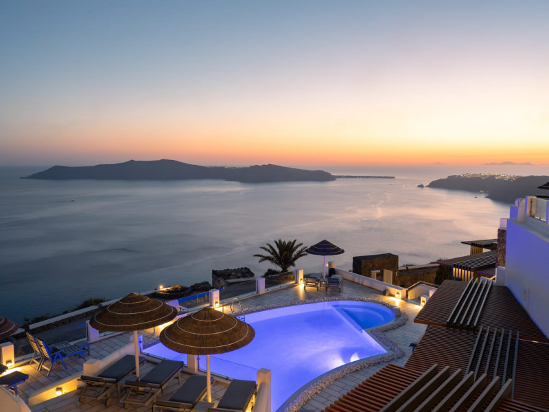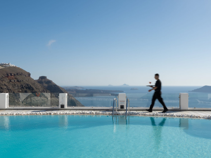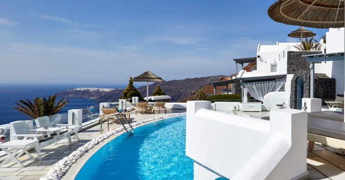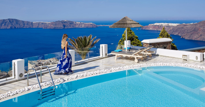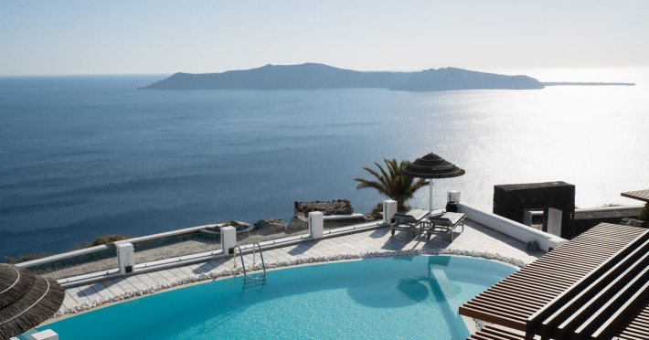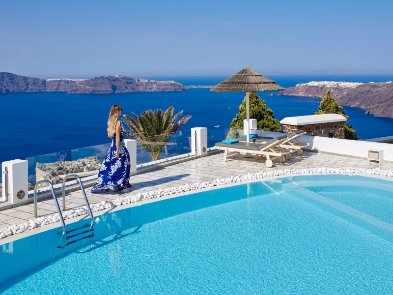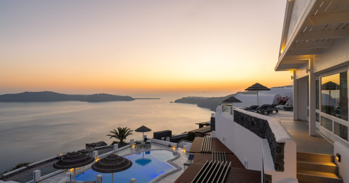 Perched on one of the most breathtaking regions, Imerovigli, on the island, the Santorini Princess Spa Hotel features an unparalleled view towards the awe-inspiring Caldera and the emerald water of the Aegean Sea. Here, every element is infused with the essence of the island's natural splendor.The outdoor swimming pool is a serene oasis, where the warm Mediterranean sun projects a golden glow, inviting guests to immerse themselves in its crystalline waters. Soak in the tranquility of the captivating turquoise scenery while sipping a refreshing drink at the pool bar. Our elegant rooms and suites offer a seamless blend of Cycladic charm and modern luxury, meticulously designed to provide an exceptional accommodation experience.Surrender to the peace and the astounding beauty of the setting as you take in the enchanting landscape that makes Santorini capture the heart of every visitor.