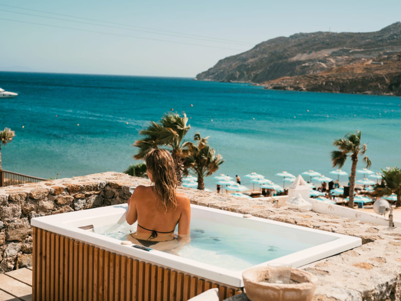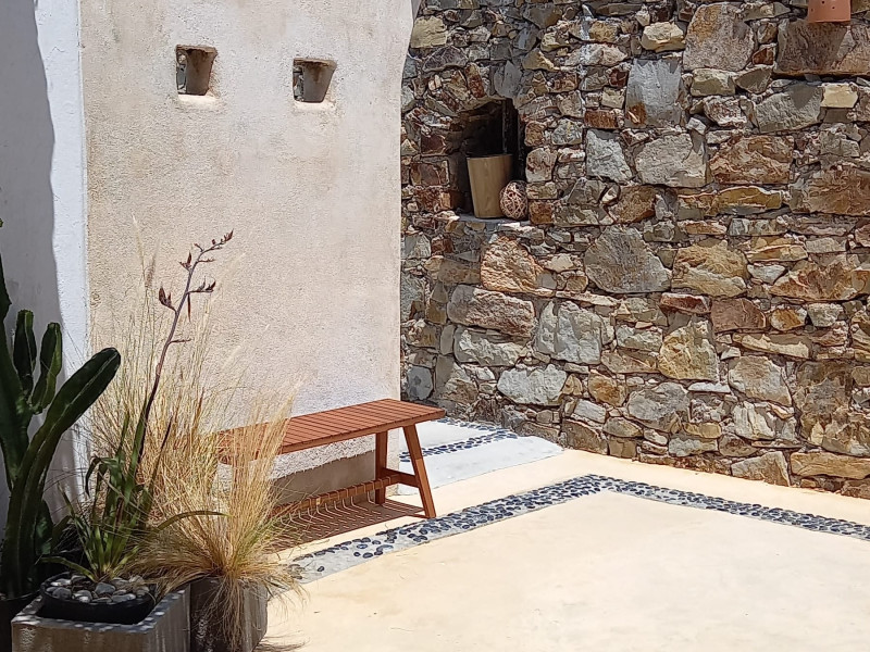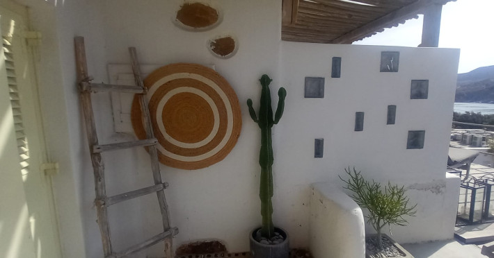 Sea Side Studios & Suites, a tailor-made complex that follows the traditional style of the Cycladic architecture, is considered to be the ideal choice for your accommodation if you decide to visit the island of Mykonos for your holidays. Comprising of comfortable and functional studios, suites as well as offering qualitative and complete services, at reasonable rates and under a hospitable and friendly atmosphere, this complex is definitely the place to be.Sea Side Studios & Suites complex is situated at an extremely preferential site of the island of Mykonos as it is built in by the beach of Kalo Livadi beach. The traditional insular complex, which is surrounded by a verdant and peaceful garden and one of the nicest beaches in the island, is located at a very close distance (3 km ) of Ano Mera village and about 10 km away from Mykonos town, the numerous entertainment centers of the island and of course the amazing beaches of the island.