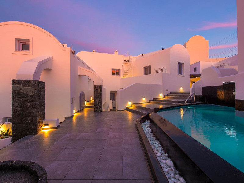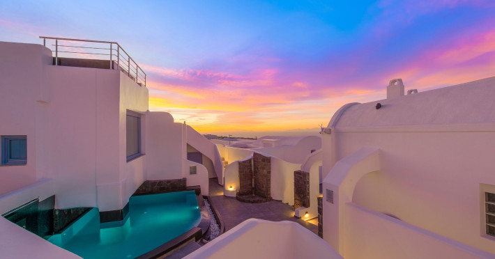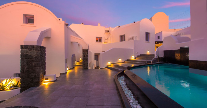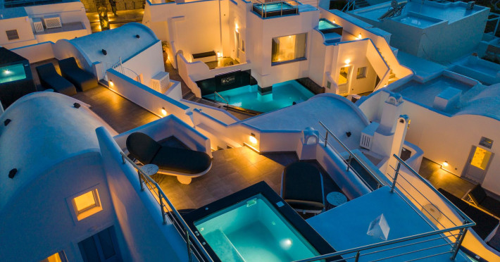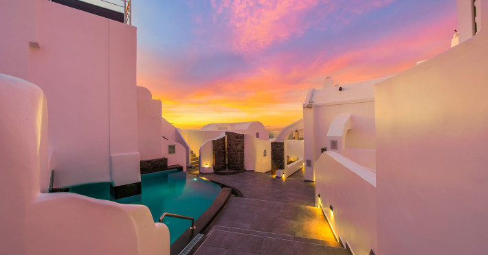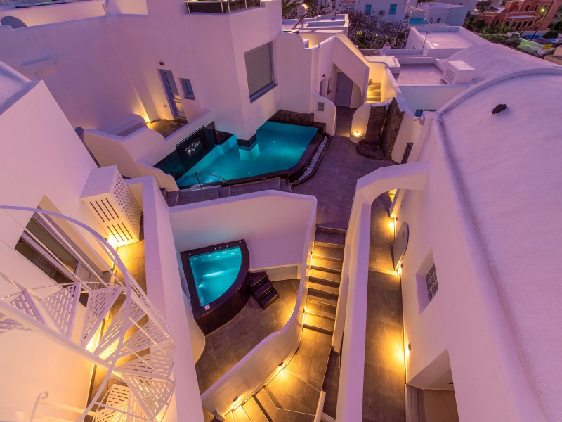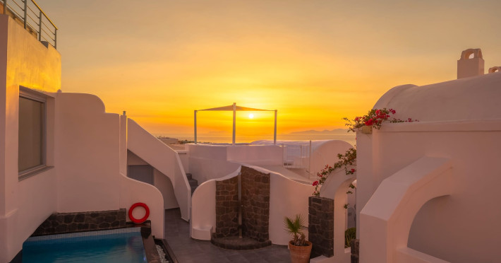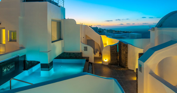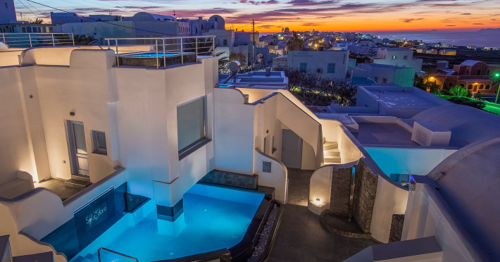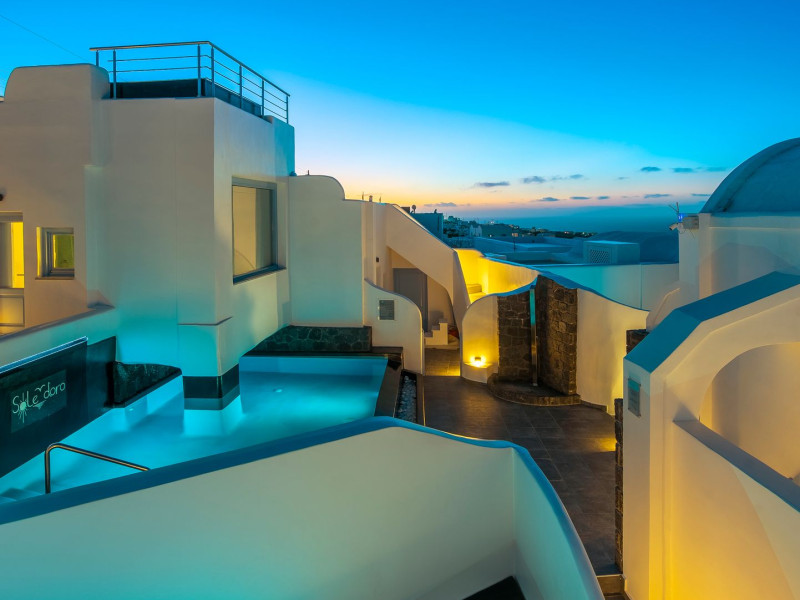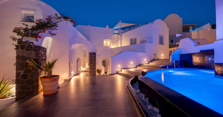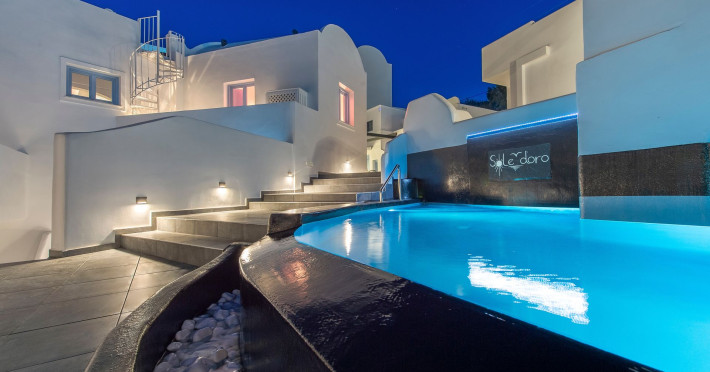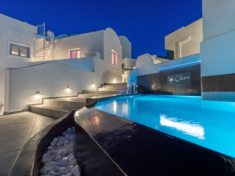 An Oasis in OiaLive the absolute experience of relaxation and luxuryA few words about the accommodationWhere tradition meets elegance, tranquility accompanies luxury and the sunset embraces the blue of the sea … there, you will discover the warm hospitality of Sole D’oro Oia for an unforgettable stay in the dreamy island of Santorini.In the picturesque area of Oia, you will feel the prestige and comfort in the 12 fully renovated luxury suites of the Sole d’oro complex with the unique Cycladic architecture. Enjoy the most beautiful sunset in the world and the endless blue of the Aegean that magnetize and seduce every visitor.Each suite has a private jacuzzi for unceasing moments of tranquility and a terrace with incredible views that take your breath away. The specially designed spa area and the face and body treatments offer relaxation and wellness and they are perfectly combined with a refreshing cocktail in the impressive pool.The luxurious facilities in combination with the helpful and friendly staff of our accommodation will help you enjoy your stay to the fullest.The incomparable beauty of Santorini and the serenity of Sole d’oro create a magical atmosphere, combining nobility and excellent quality services.Please note that hot tubs have a maximum temperature limit that can be reached due to open space and its always related with the outdoor temperature. LocationJust a few meters away from the enchanting caldera of Oia and its magical sunset lies the complex of Sole d’oro Luxury Suites. The castle, the picturesque alleys and the stunning vista of the volcano are within walking distance.In this quiet but also so lively area, you will be left in the magic of absolute peace and you will feel that in this place dreams come true.