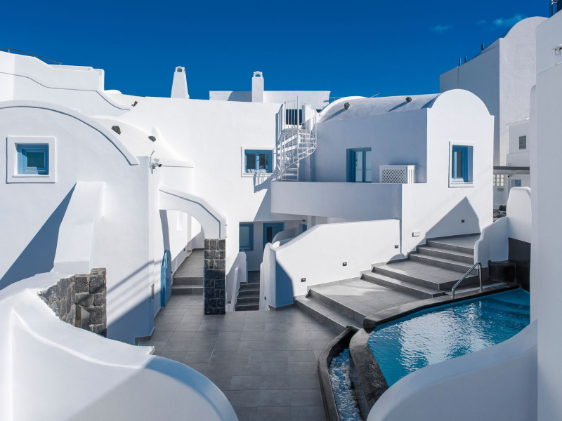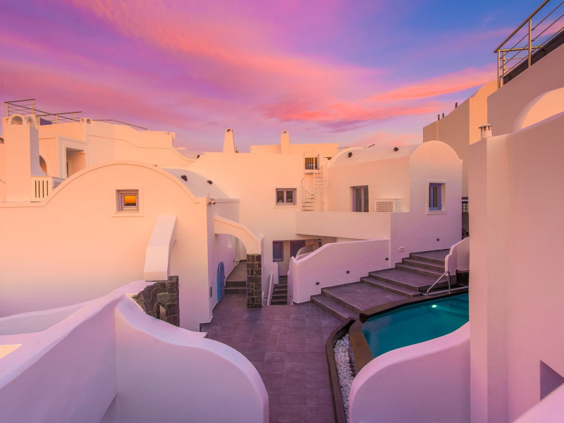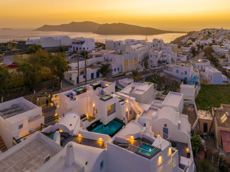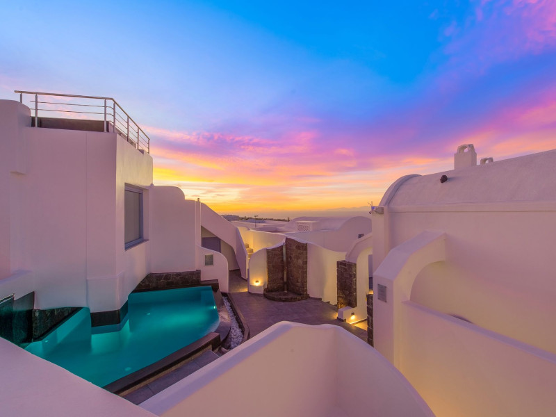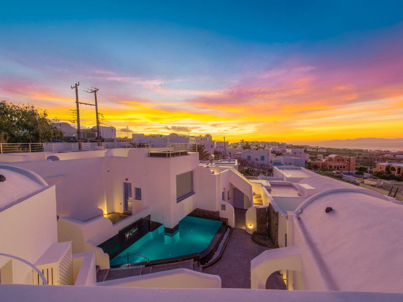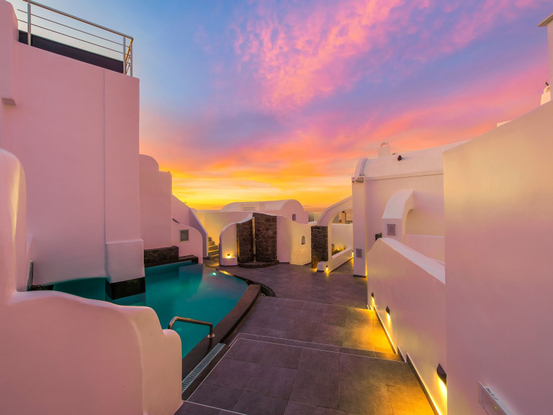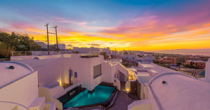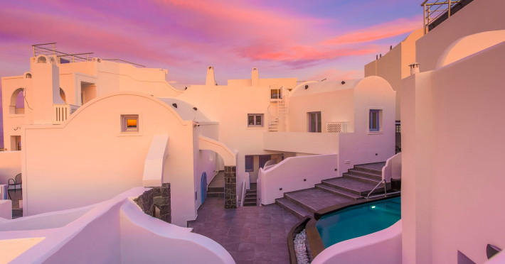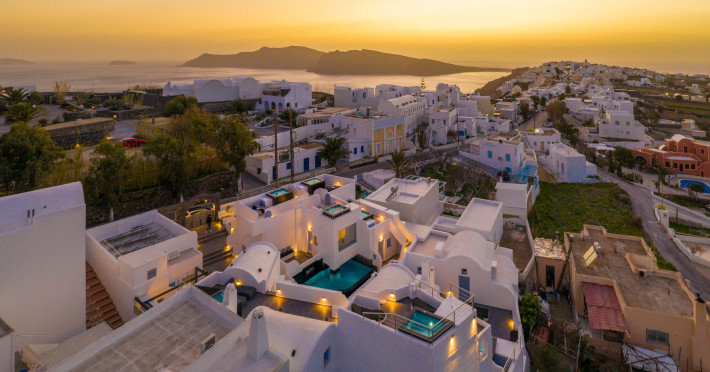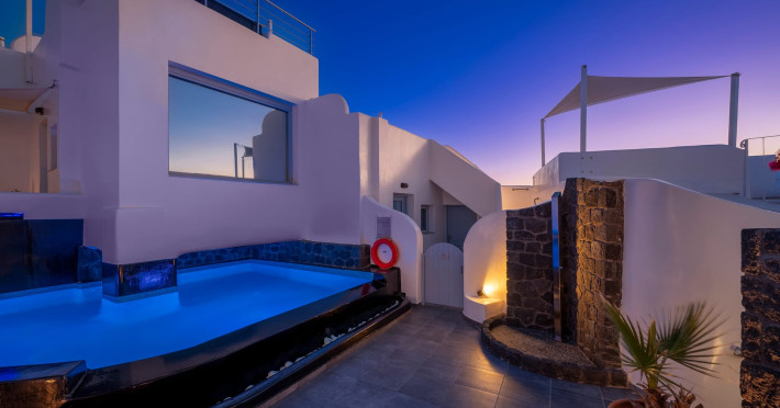 An Oasis in OiaLive the absolute experience of relaxation and luxuryA few words about the accommodationWhere tradition meets elegance, tranquility accompanies luxury and the sunset embraces the blue of the sea … there, you will discover the warm hospitality of Sole D’oro Oia for an unforgettable stay in the dreamy island of Santorini.In the picturesque area of Oia, you will feel the prestige and comfort in the 12 fully renovated luxury suites of the Sole d’oro complex with the unique Cycladic architecture. Enjoy the most beautiful sunset in the world and the endless blue of the Aegean that magnetize and seduce every visitor.Each suite has a private jacuzzi for unceasing moments of tranquility and a terrace with incredible views that take your breath away. The specially designed spa area and the face and body treatments offer relaxation and wellness and they are perfectly combined with a refreshing cocktail in the impressive pool.The luxurious facilities in combination with the helpful and friendly staff of our accommodation will help you enjoy your stay to the fullest.The incomparable beauty of Santorini and the serenity of Sole d’oro create a magical atmosphere, combining nobility and excellent quality services.Please note that hot tubs have a maximum temperature limit that can be reached due to open space and its always related with the outdoor temperature. LocationJust a few meters away from the enchanting caldera of Oia and its magical sunset lies the complex of Sole d’oro Luxury Suites. The castle, the picturesque alleys and the stunning vista of the volcano are within walking distance.In this quiet but also so lively area, you will be left in the magic of absolute peace and you will feel that in this place dreams come true.