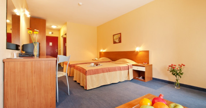 CAPACITATE: - 3 cladiri cu cate 6 etaje - 3 lifturi - 66 camere duble (max. 2+1/3 persoane, 25-30 m²) - 20 camere de familie (camere duble mai mari, max 2+2/3+1 persoane, 35 m²).
