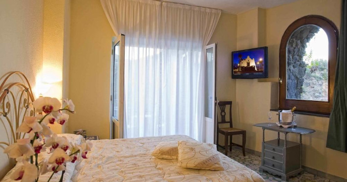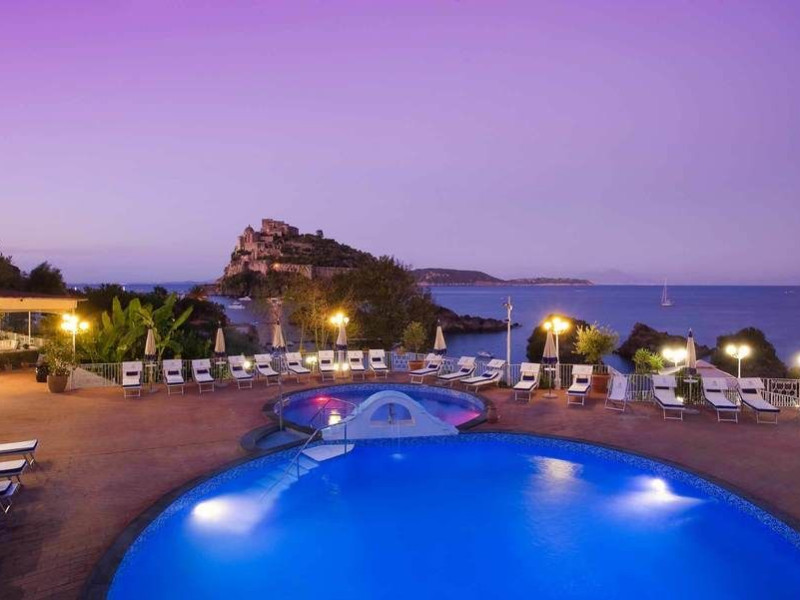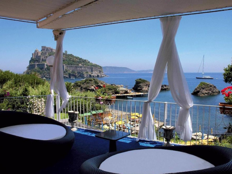 One of the most exclusive places on the entire island of Ischia awaits you for a holiday in the wonders of nature that surrounds us, without sacrificing the convenience of a central location. The Hotel Delfini is set between the green and the sea, overlooking the bay of Cartaromana, with its famous thermal pools, the rocks of SantAnna, the sixteenth-century Torre di Guevara and the ancient manor of the Aragonese Castle.A world of luxury and elegance, enveloping and relaxing atmospheres, among precious furniture, fine fabrics and artistic ceramics that will make you feel perfectly in harmony and relaxed.Continental breakfast with fresh sweet and savoury pastries.Check-in from 2 p.m. Small pets are allowed with a daily supplement.Parking available for a fee.