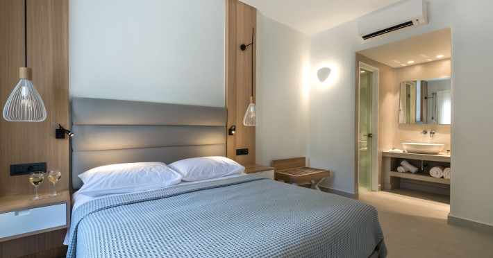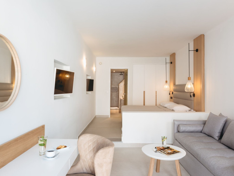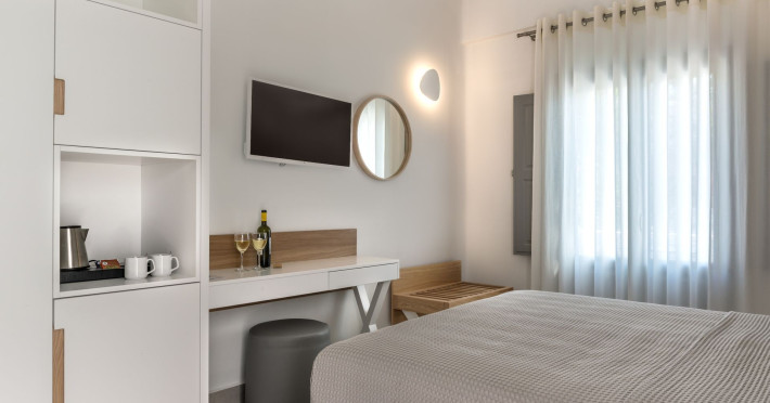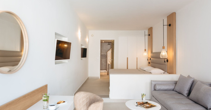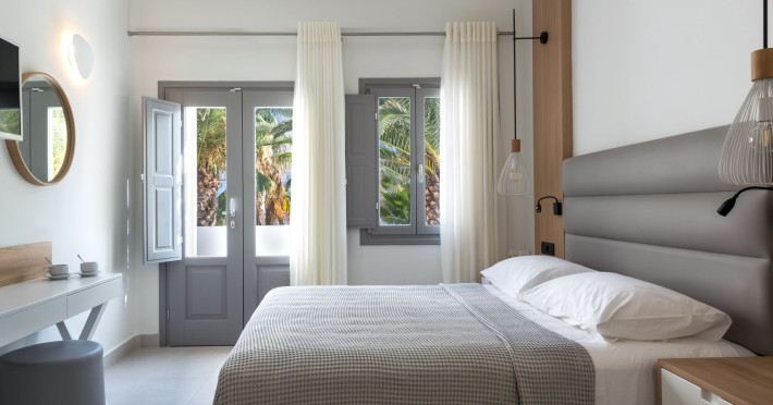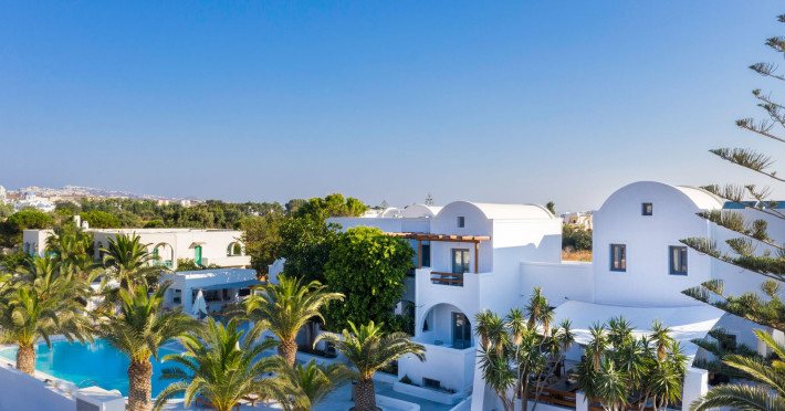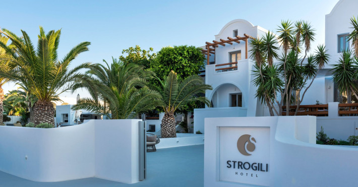 The latest addition of KD GROUP, Strogili Hotel is here to change greek hospitality as you know it! This four-star, adults only hotel, welcomes you in a place that combines local architecture with simplicity and elegance. Perfectly located near the cosmopolitan black sandy beach of Kamari that lies just a few steps away, Strogili Hotel offers you 40 minimal-chic rooms, ideal for all kind of travelers, as well as 2 stunningly beautiful outdoor swimming pools and a pool bar. The restaurant’s menu offers Greek and Mediterranean cuisine, with local ingredients and a modern approach.Strogili Hotel is located just 2 minutes away from the center of the cosmopolitan village of Kamari and 2 minutes walk from it’s famous black sandy beach. Situated on the east coast of Santorini, Kamari village promises stylish beach days and a range of nighttime activities. The distance from the airport is 4km and from the port 10km.