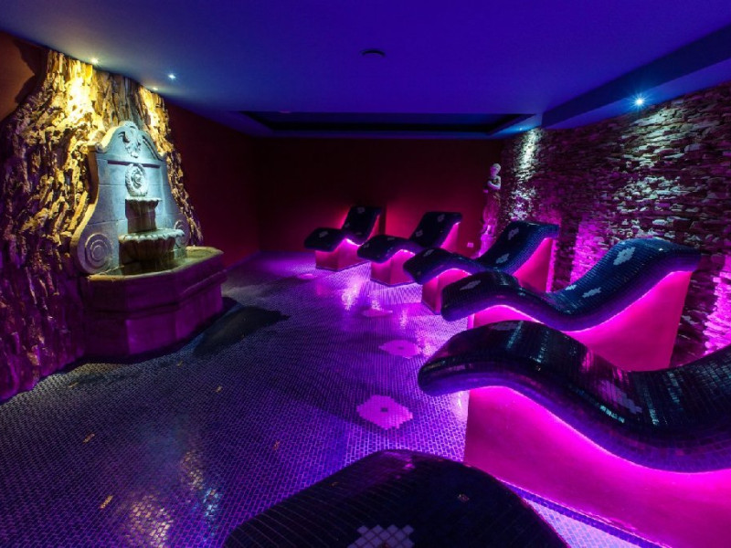 Tepidarium Este clasica camera calda cu bai romane antice. sezlongurile incalzite acoperite cu mozaic au un efect detoxifiant bland. Procesul este completat de terapii cromatice si sunet. Baie turceasca Baia turceasca este o vedeta incontestabila a oricarei facilitati SPA Wellness, oferind o experienta unica de relaxare si purificare. Cu aburul sau cald si uleiurile esentiale care se raspandesc intr-un mediu cu temperaturi de 50-55 C si umiditate ridicata, intre 80 si 90%, baia turceasca are efecte benefice remarcabile asupra corpului. Aceasta atmosfera speciala contribuie la detoxifierea organismului, relaxarea profunda a muschilor si imbunatatirea circulatiei sangelui, reprezentand o veritabila oaza de sanatate si regenerare. Bazin cu apa sarata Cu 25% salinitate, aceasta este cea mai sanatoasa alegere pentru purificarea aparatului respirator si tratarea pielii. De asemenea, este foarte recomandat pentru tipurile de piele sensibile deoarece este un mediu non-alergogen. Sauna cu infrarosu Aceasta metoda reprezinta o inovatie terapeutica relativ recenta, in care corpul este incalzit direct prin undele infrarosii, fara a creste temperatura ambientala a incaperii. Acest proces faciliteaza eliberarea eficienta a toxinelor sistemice, oferind beneficii profunde pentru sanatate si bunastare. Dus Emotional Este unul dintre cele mai noi medii de wellness. Acesta stimuleaza simturile prin urmatoarele efecte: dus clasic, tropical, ceata rece, aromaterapie, cromoterapie si hidromasaj. Zona de tratament si infrumusetare Piesa centrala a centrului nostru de Wellness este dedicata profesionalismului terapeutilor si maseurilor nostri, care sunt pregatiti sa va recomande si sa va aplice tratamente personalizate, adaptate nevoilor dumneavoastra specifice. Meniul nostru extins de masaje si tratamente este conceput pentru a se adresa oaspetilor de toate varstele, indiferent de tonusul corporal sau tipul de piele. Aceasta diversitate asigura ca fiecare vizitator poate gasi terapia perfecta pentru a-si imbunatati starea de bine si a experimenta o relaxare profunda si revitalizare. Spa Lounge Un mod delicios de a va rasfata: in timp ce va bucurati de programul nostru de SPA Wellness, nutritia joaca, de asemenea, un rol esential. Pachetul nostru include bauturi racoritoare naturale, ceaiuri relaxante si alimente sanatoase, toate gandite sa completeze perfect experienta dumneavoastra. Aceasta abordare holistica asigura ca, pe langa relaxarea corpului si a mintii, va si hraniti corpul cu tot ceea ce are nevoie pentru a se simti revitalizat si plin de energie.