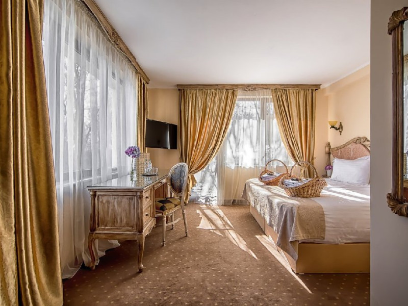 DESCRIERE CAMERE Tipuri de camere: Royal Suite Junior Suite Superior Premium King Family Room Premium Room Premium King Room King Guest Room Premium Queen Guest Dotari camere: Internet in camera; Televizor cu ecran plat; Aer conditionat; Seif; Birou; Dulap de haine; Baie cu cada; Uscator de par; Halate de baie; Set de frumusete; Papuci; Minibar Prosoape; Set ceai si cafea