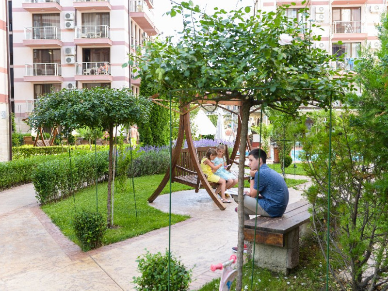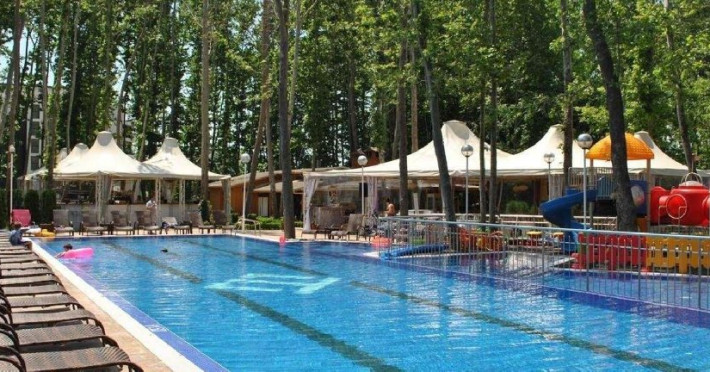 Mancare si bauturi: Restaurant principal cu terasa deschisa - Mic dejun tip bufet: 07:30-10:00 - o varietate de preparate calde si reci, specialitati din oua, o varietate de produse lactate, carnati si branzeturi, produse de patiserie, cereale, fructe, bauturi nealcoolice, bauturi racoritoare, apa si o varietate de sucuri - Pranz tip bufet : 12:30-14:00 - o selectie de salate si supe proaspete, bogat variate din mancaruri bulgaresti si internationale, mancaruri vegetariene si din carne, paste, o selectie de produse de panificatie, bufet dulci cu o varietate de deserturi, apa calda, sucuri, bauturi racoritoare, bere la halba, vin si o selectie de bauturi alcoolice bulgaresti - Gustare de dupa-amiaza in zona Aquapark: 12:30-16:00 - pizza, sandvisuri, produse de patiserie si fructe (in functie de zi). *Dupa 10.09 Gustari de dupa-amiaza vor fi servite la restaurantul principal. - Cina tip bufet: 18:30-21:00 - o selectie de salate si supe proaspete, bogat variate din mancaruri bulgaresti si internationale, preparate vegetariene si din carne, paste, o selectie de produse de panificatie, bufet dulci cu o varietate de deserturi, apa calda, sucuri, bauturi racoritoare, bere, vin si o selectie de bauturi alcoolice *Inghetata se serveste NUMAI in timpul meselor principale! - Lobby Bar: serveste bauturi all-inclusive, inclusiv bauturi alcoolice traditionale bulgare, bere la halba si vin. Deschis numai in timpul meselor principale ale restaurantului. - Pool Bar : 10:00-22:00 - bauturi calde, bauturi racoritoare, bere la halba, vin si varietate de bauturi alcoolice bulgare (01.06-10.09.25) - Bauturi la Snack bar: 10:00-22:00 - bauturi calde, bauturi racoritoare, bere la halba, vin si o selectie de bauturi alcoolice bulgare 22:00-23:00 - doar bautiri.contra cost Sport si divertisment: Casca de dus, trusa de ras, trusa de par, trusa de cusut - disponibil la cerere Utilizarea a doua piscine exterioare cu sectiune pentru copii (de la 08:00 la 18:00) Umbrele si sezlonguri gratuite in jurul piscinei si in gradina hotelului (in functie de disponibilitate) Mobilier de gradina este disponibil oaspetilor in gradina Terase de soare langa piscine Transfer gratuit la si de la plaja dupa 01.06.25 intre orele 09:00-17:00 Volei pe plaja, fotbal pe plaja, tenis pe plaja Boca, darts, tir cu arcul, bingo Zona pentru yoga si meditatie Competitii si jocuri distractive, dans (6 zile pe saptamana) Varietate de spectacole de seara Spatiu pentru jocuri distractive Scena pentru spectacole Wi-Fi gratuit in intregul hotel