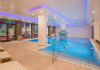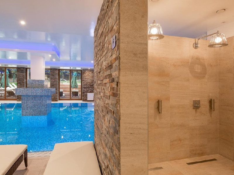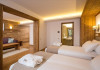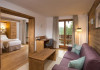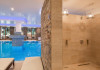 6 APARTAMENTE JUNIOR PREMIUN - 42 mp, ofera o zona de relaxare cu canapea extensibila de 140 cm, birou de lucru, minibar, TV si conexiune wireless gratuita la internet. Paturile din dotarea camerelor, de tip matrimonial, dispun de saltele speciale ce confera odihna perfecta. Un al doilea televizor poate fi furnizat la cerere, in zona de relaxare. Exista doua camere de baie, una dotata cu cada, cabina de dus si lavoar, cea de-a doua cu vas de toaleta cu functie dubla (functie de bideu) si lavoar. Incalzirea in pardoseala, uscatorul de par, oglinda pentru cosmetica, halatul si papucii sunt doar cateva dintre elementele care definesc rafinamentul acestor camere.