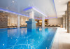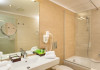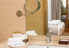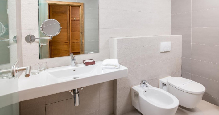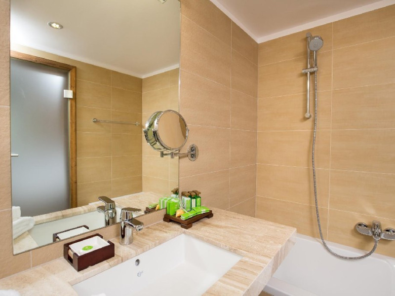 55 APARTAMENTE JUNIOR - 38 mp, ofera o zona de relaxare cu canapea extensibila de140 cm, birou de lucru, minibar, TV si conexiune la internet wireless gratuita. Paturile din dotarea camerelor, matrimonial sau twin, dispun de saltele speciale ce confera odihna perfecta. Un al doilea televizor poate fi furnizat la cerere, in zona de relaxare. Exista doua camere de baie, una dotata cu cada, cabina de dus si lavoar, cea de-a doua cu vas de toaleta cu functie dubla (functie de bideu) si lavoar. Incalzirea in pardoseala, uscatorul de par, oglinda pentru cosmetica, halatul si papucii sunt doar cateva dintre elementele care definesc rafinamentul acestor camere.
