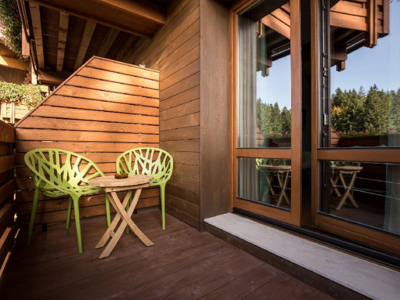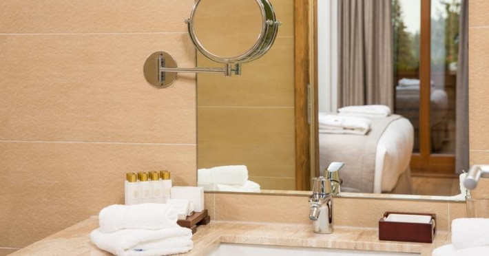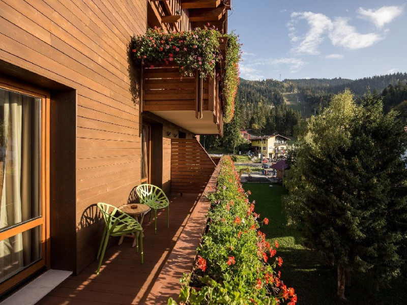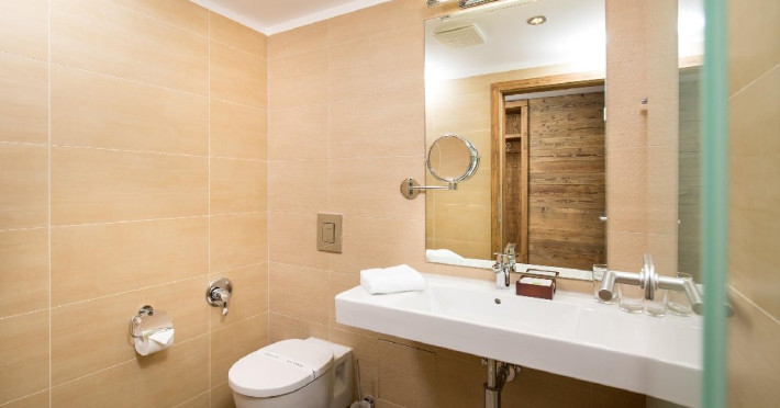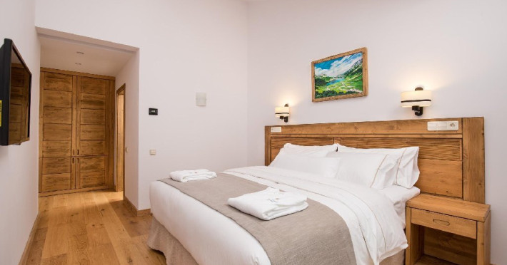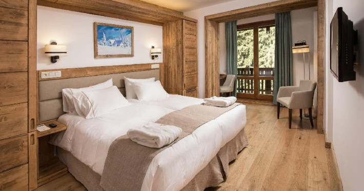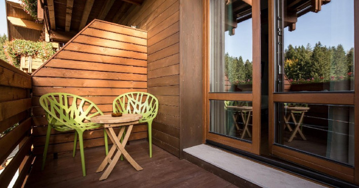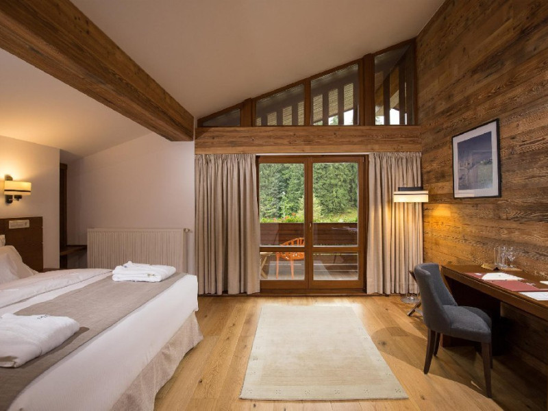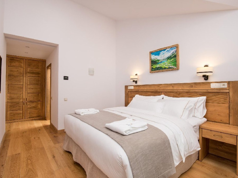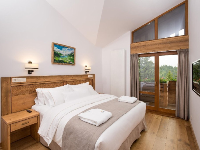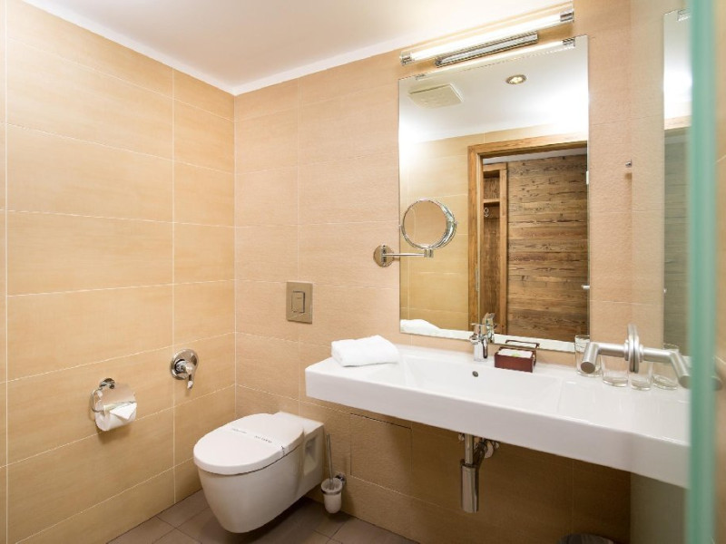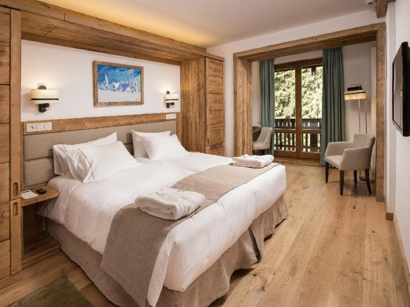 10 CAMERE DUBLE SUPERIOARE - 31 mp, Se poate opta pentru pat matrimonial sau paturi separate, camera beneficiind de urmatoarele dotari: birou, TV, telefon, seif, minibar, conexiune wireless la internet gratuita si control individual al temperaturii in camera. Camera de baie are cada sau cabina de dus, uscator de par, oglinda pentru cosmetica, halat de baie, papuci si o atmosfera de relaxare minunata. Balconul spatioasei camere ofera o imagine montana de vis.
