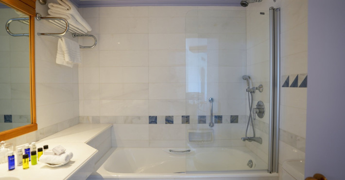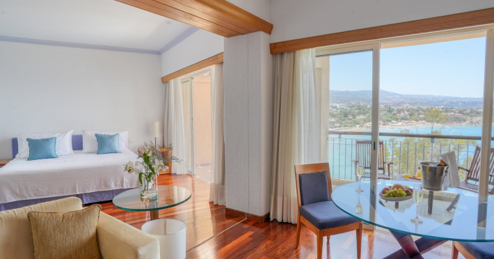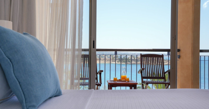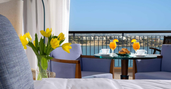 Camera dubla, vedere la mare: baie, toaleta, uscator de par, aer conditionat, TV/sat., facilitati pentru prepararea de cafea si ceai, telefon, seif, balcon sau terasa, vedere la mare, 25m2.