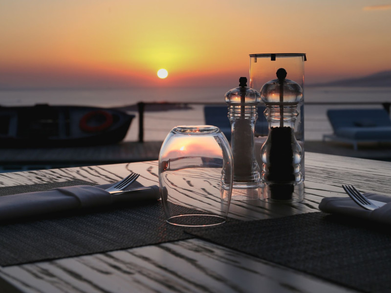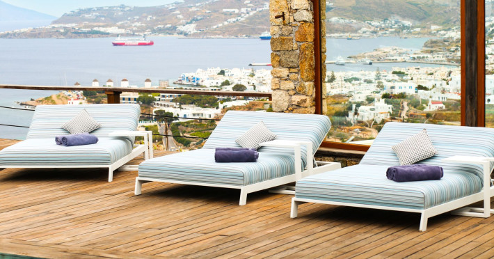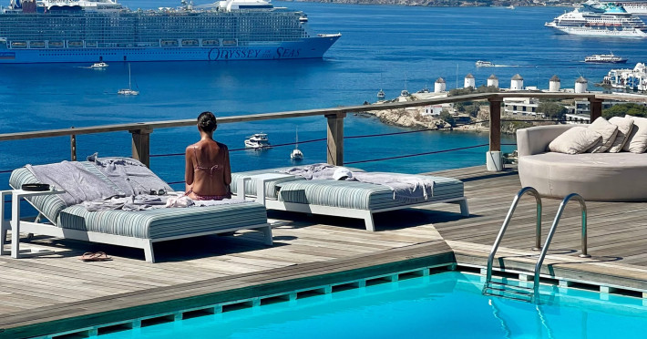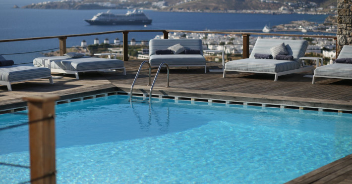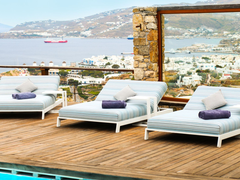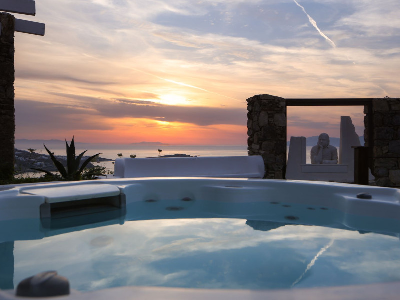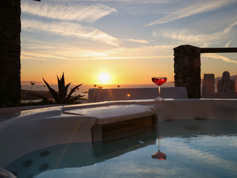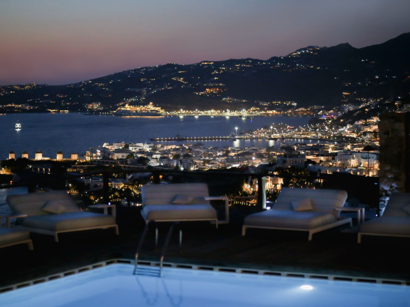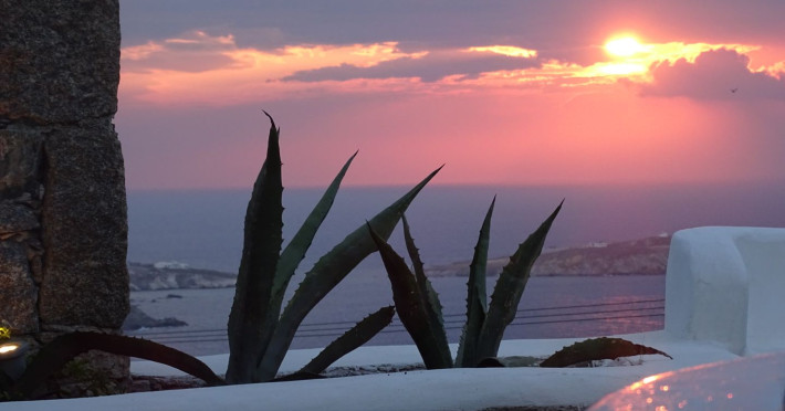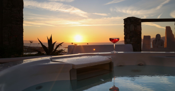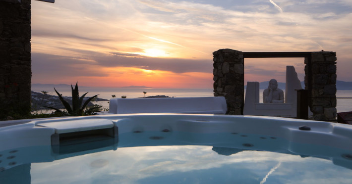 Built in 1997, renovated in 2015, on the top of a small hill, offering panoramic view of the Aegean Sea and breathtaking sunsets, but still only 900m from town center, the Tharroe of Mykonos Hotel is a brilliant blend of traditional Mykonian architecture with sophisticated luxury influences and modern facilities. It’s unique location, very close to the town centre, but yet away from the town noise, makes Tharroe of Mykonos a cool heaven of relaxation in one of Greece most vibrant islands. With cozy living rooms, which reflect vitality and magic, excellent gourmet restaurant, stunning sea and sunset view and impeccable service, this Boutique Deluxe Hotel, has earned his reputation as a Mykonian classic.Overlooking Mykonos town, Aegean Sea and the islands of Tinos, Syros, Delos, Gyaros, Paros and Naxos the property premises offer unique spots for photo-shooting.Even the quiet colorful island landscape is perfect under daybreak colors. Relax with the view from your balcony or terrace, or even from your bed.Enjoy the breathtaking sunsets drinking a special cocktail by the pool or taste our exceptional Mediterranean cuisine.