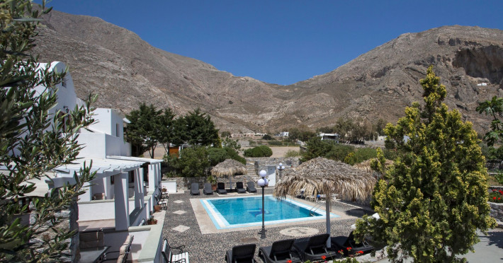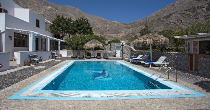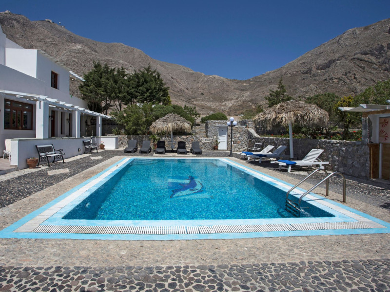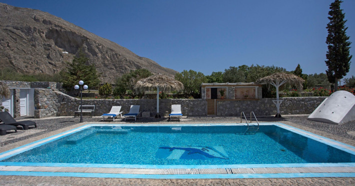 Beautifully situated in a quiet spot close to Perissa, within walking distance of Perissa’s black sandy beach, The Birds Villa Apartment offer guests complimentary transfer to and from the port and the Airport. All apartments with air condition, big private balconies with a view of the sea and the mountain, private bathroom, full equipped kitchen with kitchen utilities,oven,microwave, coffee and tea facilities, separate bedrooms,hair dryer, TV, WIFI and FREE car for all the duration of your stay.Laundry machine is also available to use.Swimming pool , umbrellas and lounge chairs, guests can enjoy breakfast. Free transfer from the port or the airport to the villa(between 08.00 am to 21.00 pm) and continental breakfast included. The property is situated in Perissa beach at the southern part of the island.We are just 500m from the biggest beach of the island and just 400m from the restaurants,bars,super market and local bus station. With your free car you can easy explore the beaches of the island like Red beach, Kamari beach, Vlychada beach and Monolithos beach plus with 15min drive you are in the center of the island, Fira town To the other side of the island Oia you can drive in 35 min. With our office you can also book daily tours to Volcano and to the hot springs or hire ATVS for fun