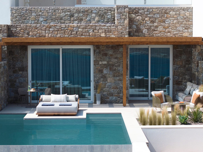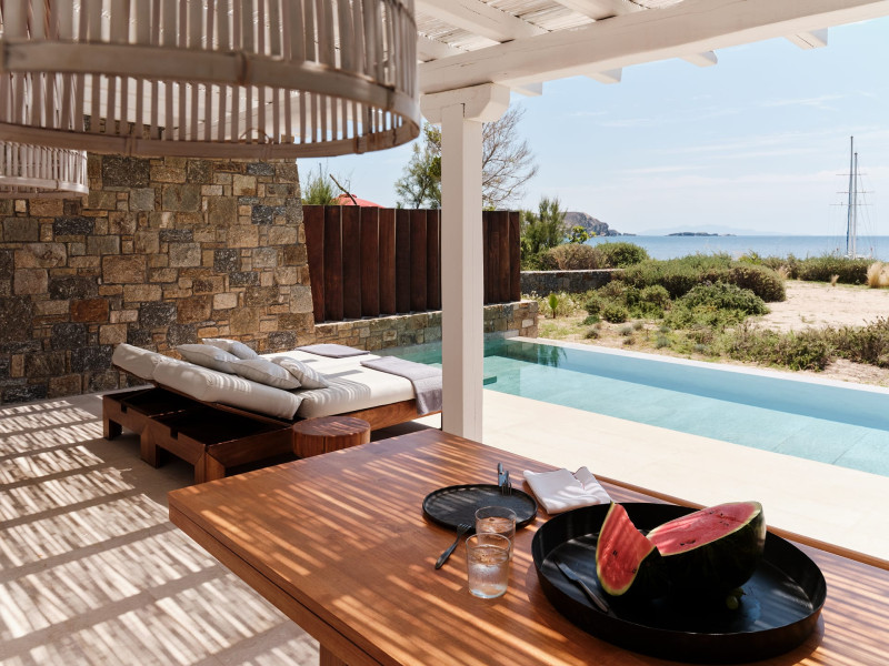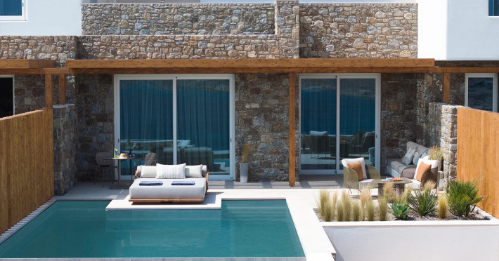 On the cloistered bay of Agios Ioannis, The Coast Bill&Coo is a world apart from the clamour of Mykonos’ most crowded beaches, yet only 4km from the 24-hour scene of Mykonos town. This adults-only hideaway features 25 suites and 1 villa, offering the choice of a plunge pool or jacuzzi, terrace or balcony, for the ultimate in relaxation. For heightened seclusion, the beachfront suites provide the added indulgence of private pools and terraces. Alternatively, enjoy the new ultra private Grand Coastal Suites - the largest accommodation at The Coast Bill&Coo, all featuring an expansive terrace area and pool.A Seaside RetreatAll sun-drenched suites and villas are dressed in natural shades of white, bleached wood, and local stone, a soothing backdrop for the high-definition surroundings and sea views are guaranteed.An Epicurian JourneyEach of our restaurants boasts its unique character and ambiance. Whether you're savoring the flavors of our fine dining restaurant YEVO, indulging in prime cuts and fresh seafood at Beefbar Mykonos, enjoying beach-front dining at Coozest, or relishing bespoke cocktails, we're dedicated to crafting straightforward choices with seasonal, fresh ingredients.