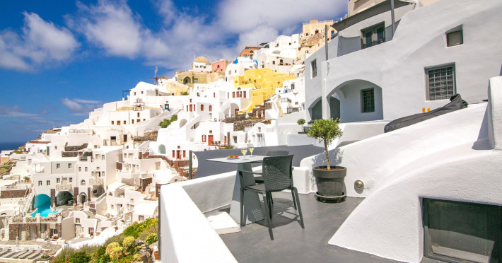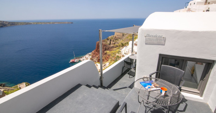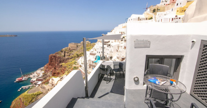 Theodora Suites are situated in the picturesque village of Oia, perched at the edge of the unique volcanic rocks of Santorini offering breathtaking views of the volcano and Santorini's world-famous sunset. The unique Theodora Suites offers supreme accommodation in three privileged spots right in the heart of Oia village. Each Suite is carefully designed with light colours and elegant decor providing their guests a dreamy place with romantic atmosphere