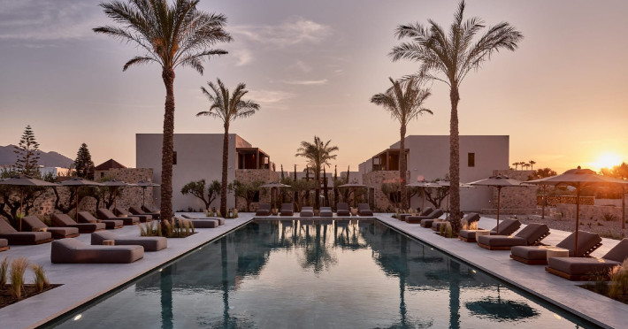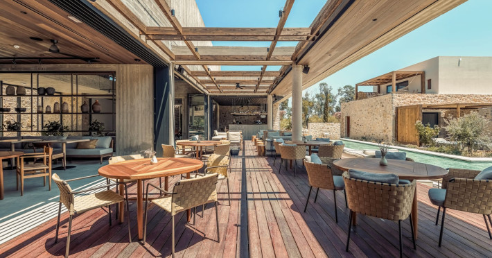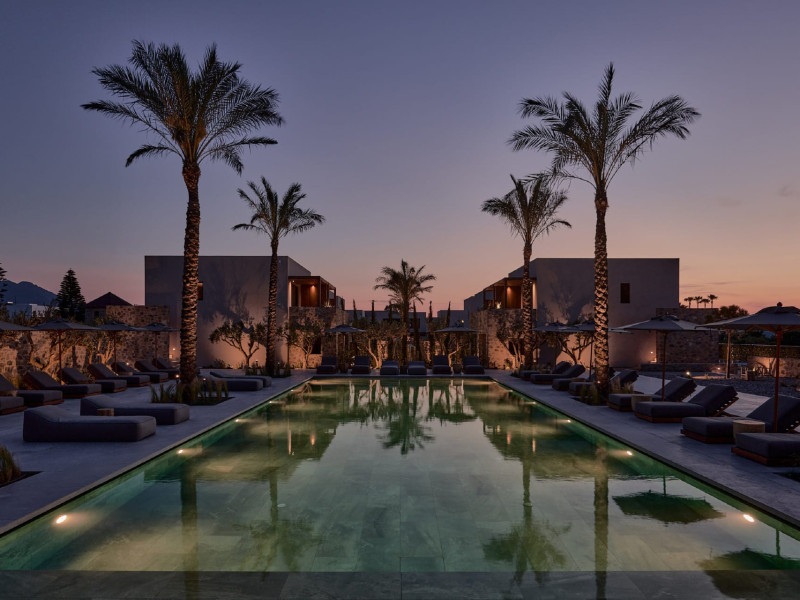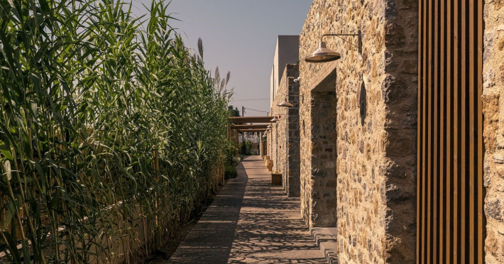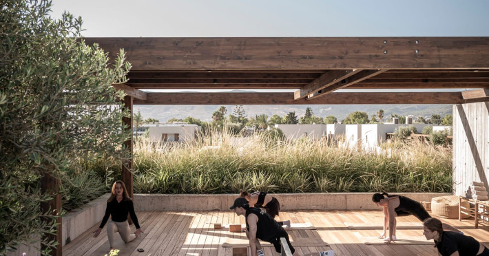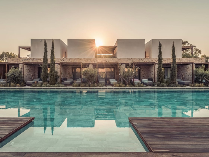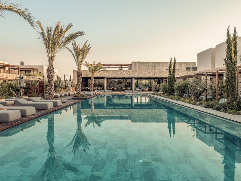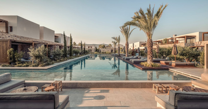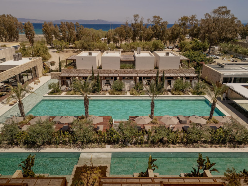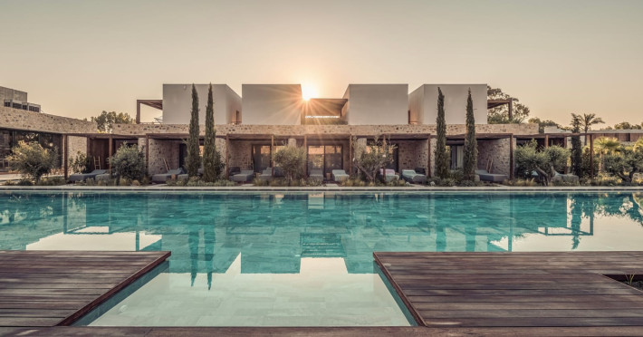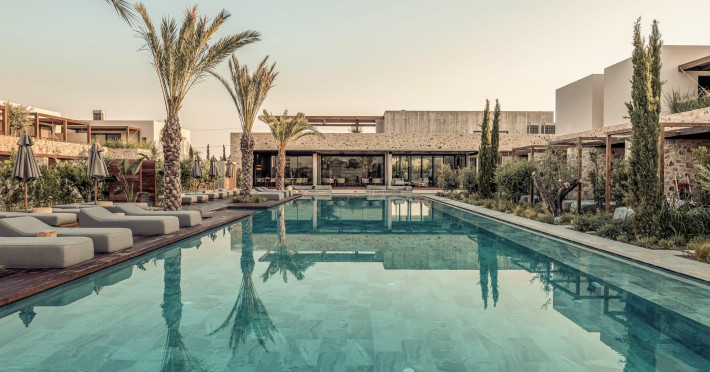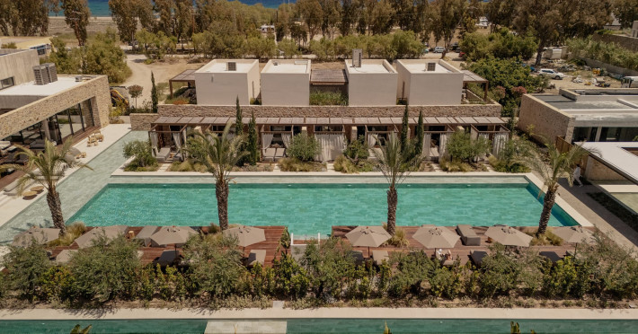 Theros derives from the Ancient Greek meaning “summer”.We invite you to a journey of experiences that constitute the spirit of slow living on a Greek island. Enjoy the private yard or terrace of our 86 suites, surrounded by a Mediterranean garden. From palm trees to olive trees, there is a different garden to explore in every corner. Large terraces with roof gardens is the least you can enjoy, if you select an upper floor suite.You are always free to choose the communal wide pool, socialize in our all-day pool bar or choose one of the suites with a private pool. If you prefer the sea, Theros All Suite Hotel is located just 120 meters away from the magnificent sandy beach of Lambi.Taste our culinary proposals based on a balanced Mediterranean diet, that are combining crops from our nearby vegetable garden, from local farms and selected ingredients produced in Greece.Induct yourself in our SPA’s special treatments, based on the healing tradition of medicinal (Hippocratic) herbs from the country of Kos and train your body in the gym, the yoga sessions and on the pools.