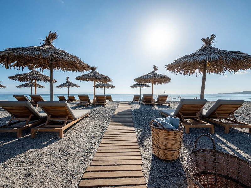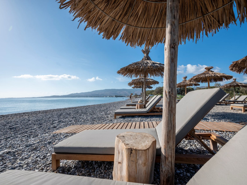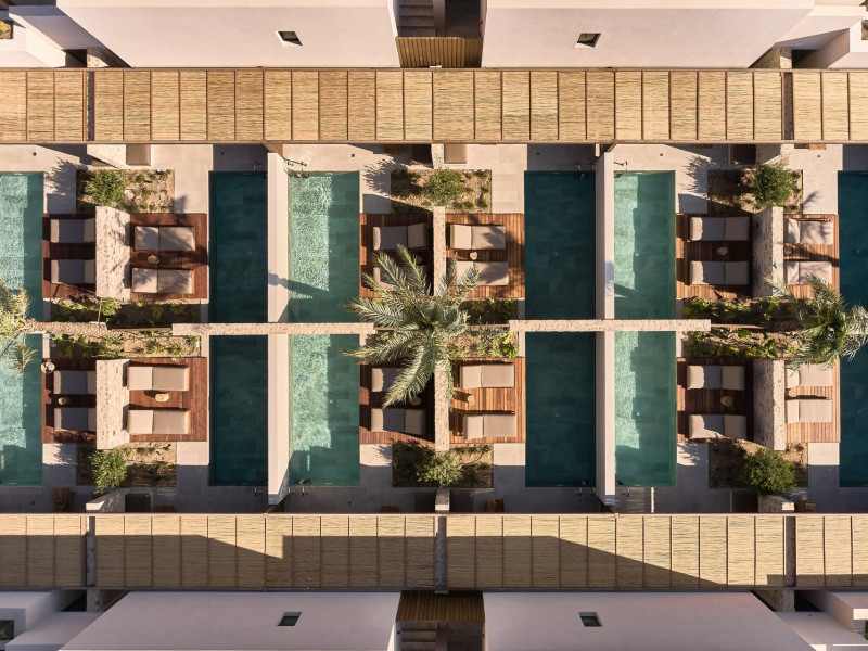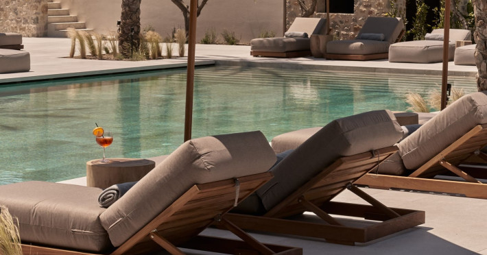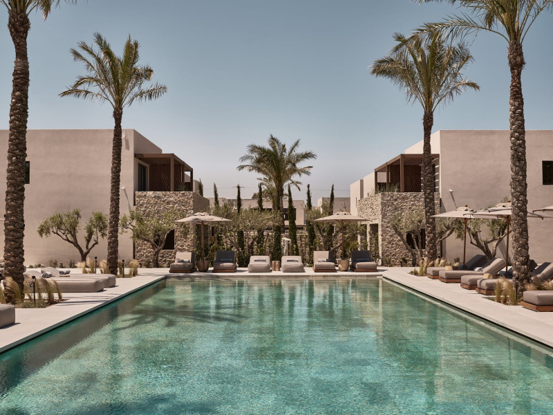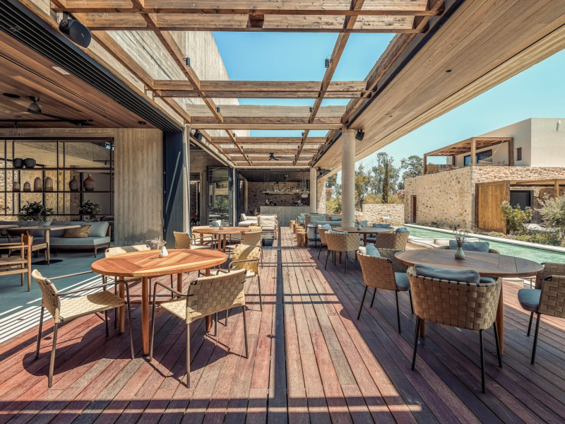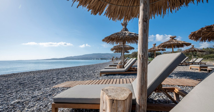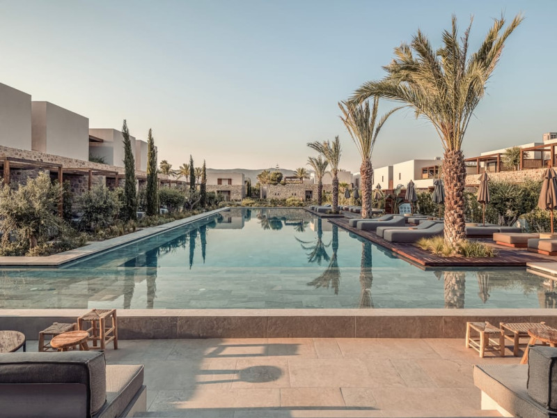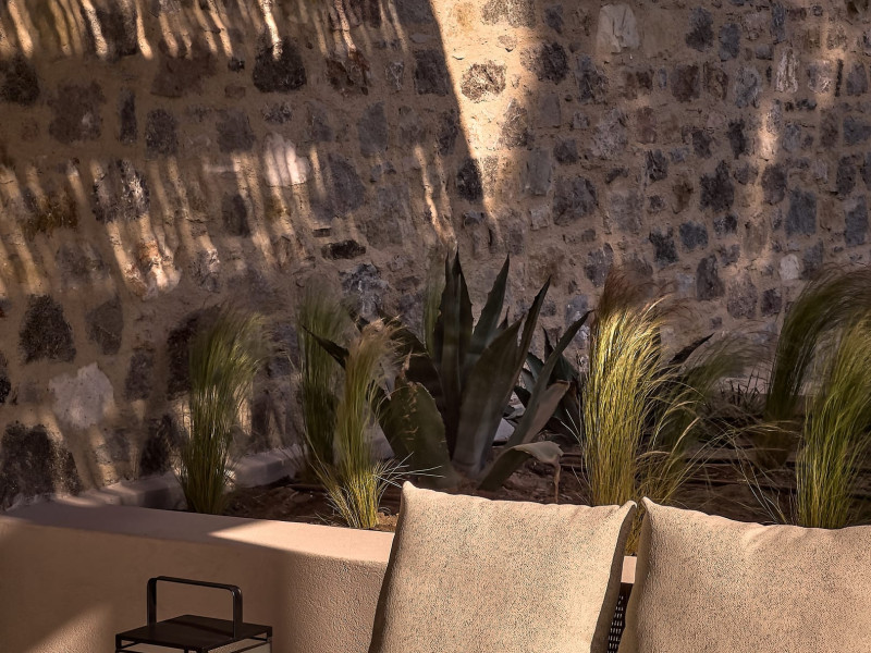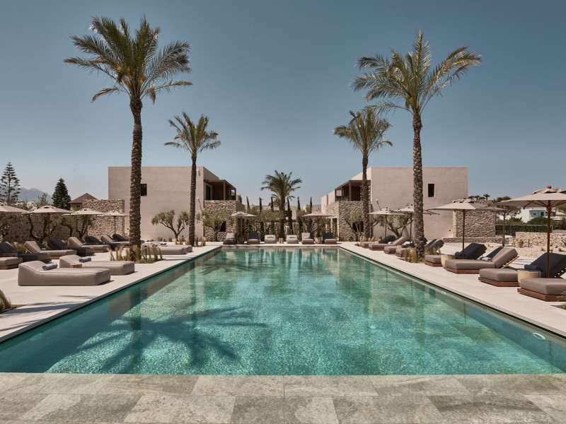 Theros derives from the Ancient Greek meaning “summer”.We invite you to a journey of experiences that constitute the spirit of slow living on a Greek island. Enjoy the private yard or terrace of our 86 suites, surrounded by a Mediterranean garden. From palm trees to olive trees, there is a different garden to explore in every corner. Large terraces with roof gardens is the least you can enjoy, if you select an upper floor suite.You are always free to choose the communal wide pool, socialize in our all-day pool bar or choose one of the suites with a private pool. If you prefer the sea, Theros All Suite Hotel is located just 120 meters away from the magnificent sandy beach of Lambi.Taste our culinary proposals based on a balanced Mediterranean diet, that are combining crops from our nearby vegetable garden, from local farms and selected ingredients produced in Greece.Induct yourself in our SPA’s special treatments, based on the healing tradition of medicinal (Hippocratic) herbs from the country of Kos and train your body in the gym, the yoga sessions and on the pools.