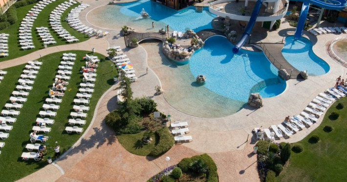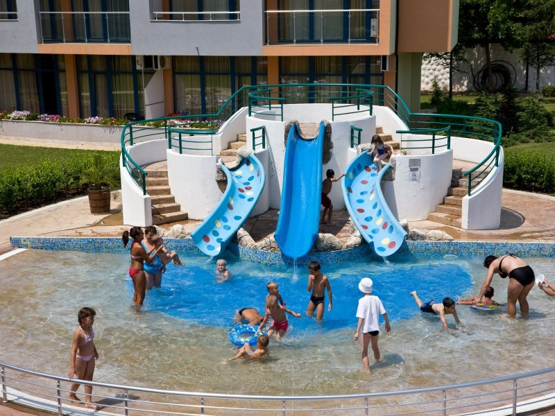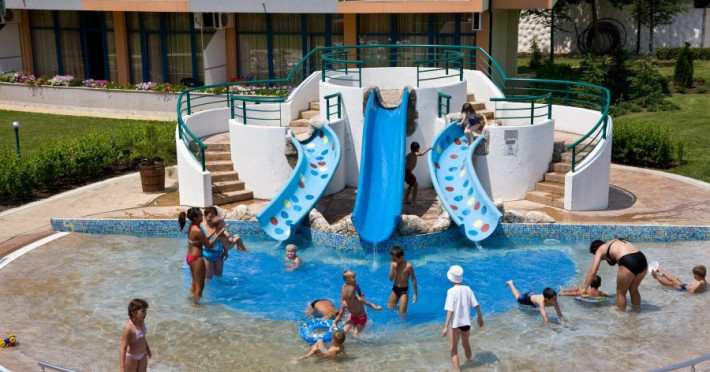 Mancare si bauturi: - Mic dejun tip bufet: 07:30-10:00 h - diverse fructe si legume proaspete, branzeturi si carnati, fulgi de porumb, cornuri, clatite, oua, bauturi reci si calde. - Pranz tip bufet: 12:00-14:00 - o varietate de preparate calde si reci, o varietate de produse lactate, fructe de sezon, o varietate bogata de preparate din bucataria bulgara si internationala. Bauturi incluse in pachet: apa minerala, bauturi racoritoare, bere la halba si vin, cafea si ceai, ciocolata calda. - Gustari la barul din hol: 11:00-15:00 - hot dog, sandvisuri, fructe de sezon - Inghetata: 15:00-17:00 h - Cina tip bufet: 18:00-21:00 - o varietate de preparate calde si reci, o varietate de produse lactate, fructe de sezon, o varietate bogata de preparate din bucataria bulgara si internationala. Bauturi incluse in pachet: apa minerala, bauturi racoritoare, bere la halba si vin, cafea si ceai, ciocolata calda. *Seara tematica bulgara cu bucatarie traditionala si spectacol de folclor - in fiecare vineri, din iunie pana in septembrie - Lobby bar: 10:00-23:00 - Bauturi alcoolice locale, cocktailuri, bauturi racoritoare, bere, vin, bauturi calde. - Pool Bar: 10:00-23:00 - Bauturi alcoolice locale, cocktailuri, bauturi racoritoare, bere, vin, bauturi calde. - Mezzanine Bar: 15:00-23:00 - varietate de bauturi racoritoare si alcoolice si cocktailuri 15:00-17:00 h - Produse de patiserie Sport si divertisment: Sticla de apa 1,5l - oferita o singura data, complimente, pentru oaspetii nou sositi Utilizarea gratuita a piscinei in aer liber Umbrele de soare si sezlonguri la piscina Aerobic, stretching, gimnastica acvatica; polo pe apa Zumba, darts, tenis de masa Jacuzzi Divertisment de seara Internet Wi-Fi in cladirea principala si in zonele publice Serviciu de bagaje Pentru copii: Scaune inalte in restaurant Sectiunea pentru copii in piscina Tobogane cu apa Loc de joaca pentru copii. Gradina pentru copii / Miniclub