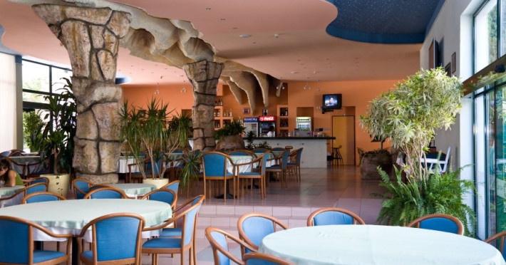 Mancare si bauturi: - Mic dejun tip bufet: 07:30-10:00 h - diverse fructe si legume proaspete, branzeturi, fulgi de porumb, cornuri, clatite, oua, bauturi reci si calde. - Pranz tip bufet: 12:00-14:00 - o varietate de preparate calde si reci, o varietate de produse lactate, fructe de sezon, o varietate bogata de preparate din bucataria bulgara si internationala. Bauturi incluse in pachet: apa minerala, bauturi racoritoare, bere la halba si vin, cafea si ceai, ciocolata calda. - Gustari: 11:00-15:00 - hot dog, sandvisuri, fructe de sezon - Inghetata: 15:00-17:00 h - Cina tip bufet: 18:00-21:00 - o varietate de preparate calde si reci, o varietate de produse lactate, fructe de sezon, o varietate bogata de preparate din bucataria bulgara si internationala. Bauturi incluse in pachet: apa minerala, bauturi racoritoare, bere la halba si vin, cafea si ceai, ciocolata calda. - Lobby bar: 10:00-23:00 h - Bauturi alcoolice locale, cocktail-uri, bauturi racoritoare, bere, vin, bauturi calde. 15:00-17:00 h - Produse de patiserie - Pool Bar: 10:00-23:00 - Bauturi alcoolice locale, cocktailuri, bauturi racoritoare, bere, vin, bauturi calde.