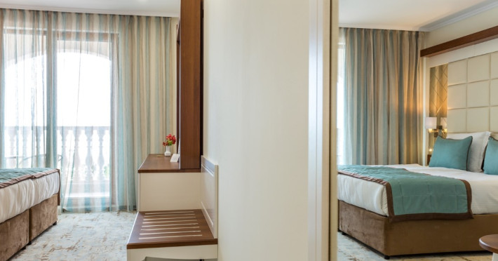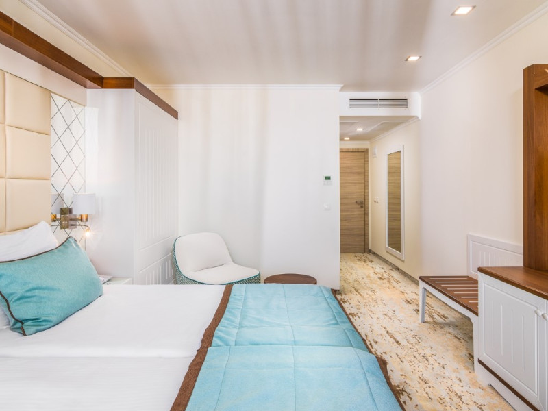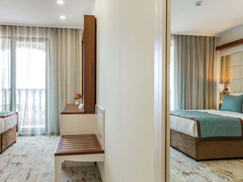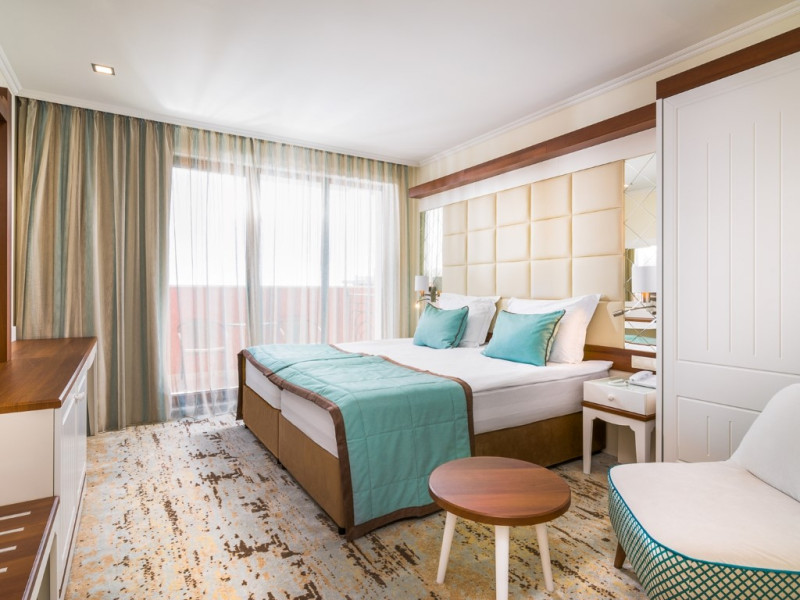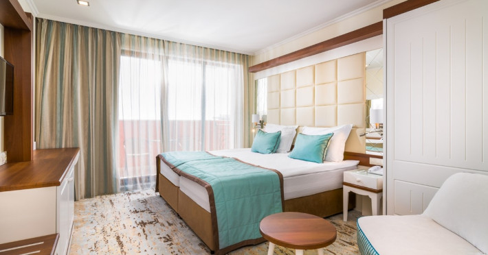 CAPACITATE: - 215 camere duble (max. 2+1 persoane, 20-25 m²) - 19 camere duble Superioare (camere duble mai spatioase, min. 2 persoane, max 2+2/3+1 persoane, 30-35 m²) - 23 camere de familie (min. 2 persoane, max. 2+2/3+1 persoane, 45 m²).
