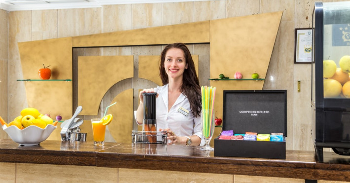 - in barul din aer liber Fresh, de la 10:30 la 12:00 si de la 15:00 la 17:00 - sucuri proaspat stoarse (citrice si alte fructe), piureuri, milk shake si o mare diversitate de ceaiuri