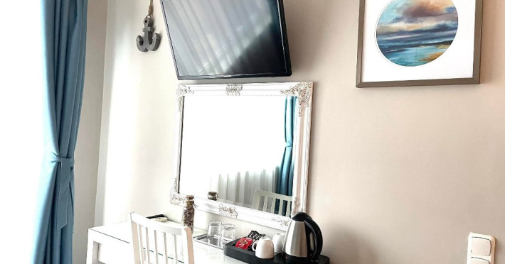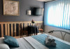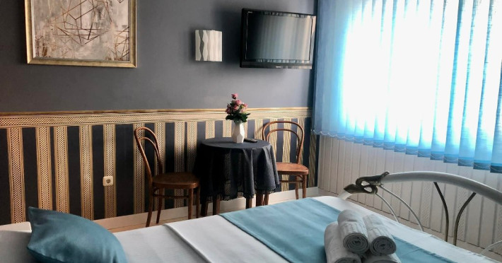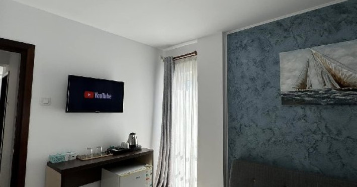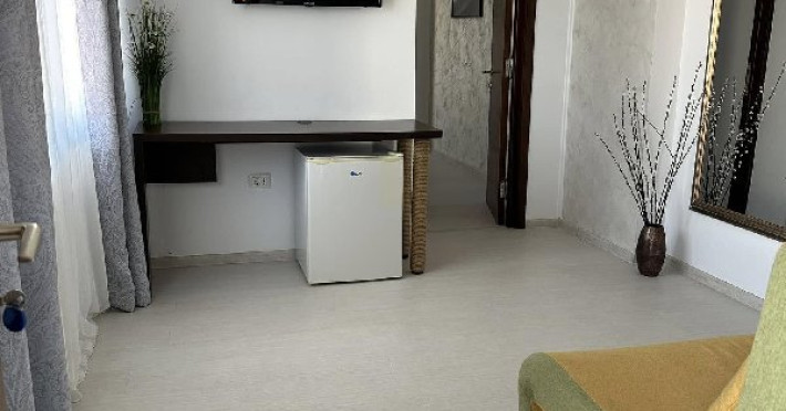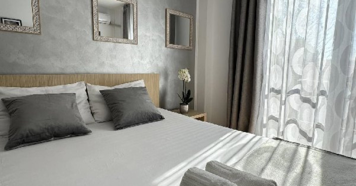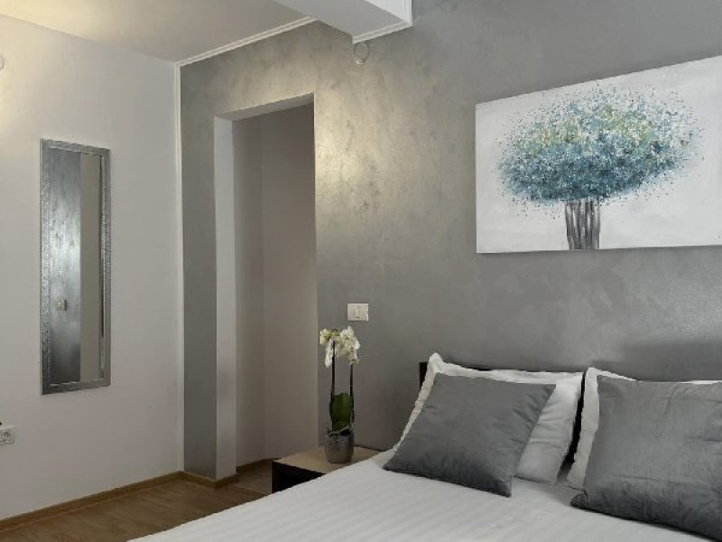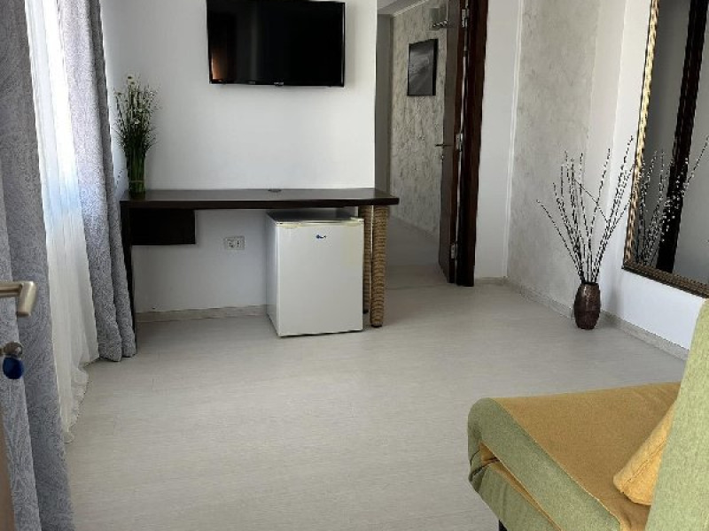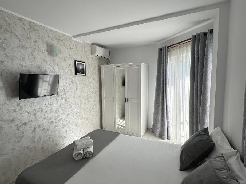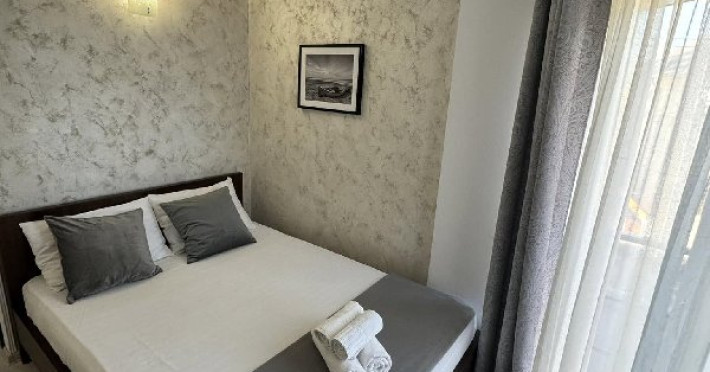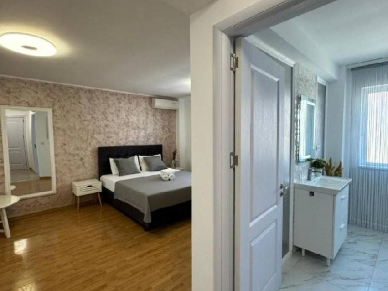 Apartament tip studio: dormitor matrimonial, living cu canapea extensibila, 1 baie. Capacitate maxima 3 adulti + un copil.