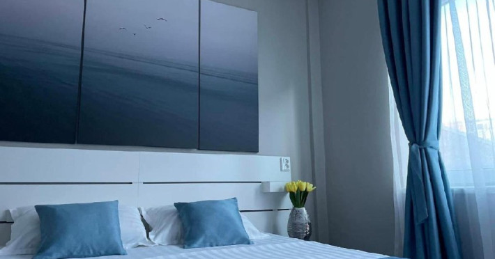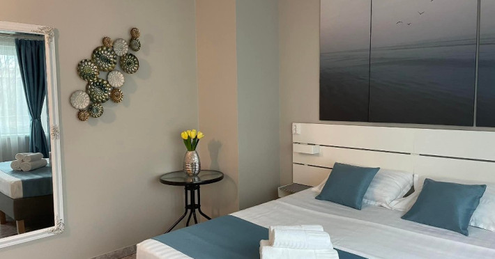Suita de familie: 2 dormitoare cu pat matrimonial, 1 baie principala, 1 baie serviciu, 2 balcoane. Capacitate maxima 4 persoane.