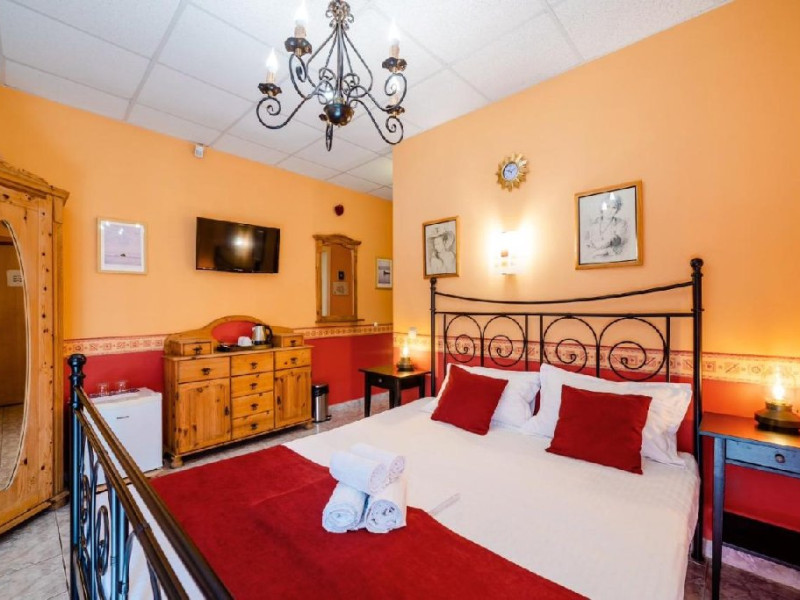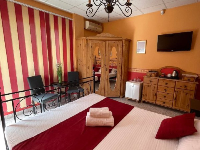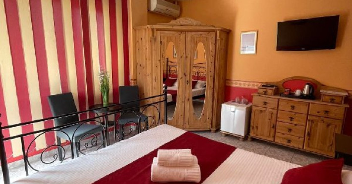 Camera King: pat matrimonial, canapea extensibila, o baie, balcon. Capacitate maxima 3 adulti + un copil.