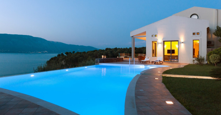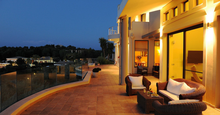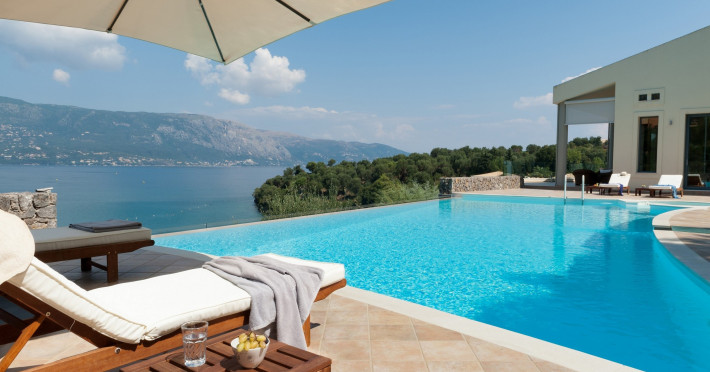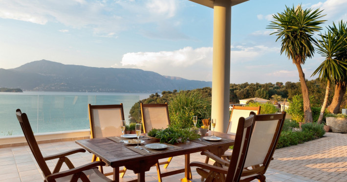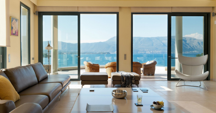 has a beautiful unobstructed view of the Mediterranean waters and landscape,