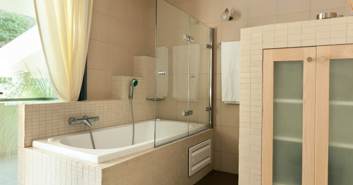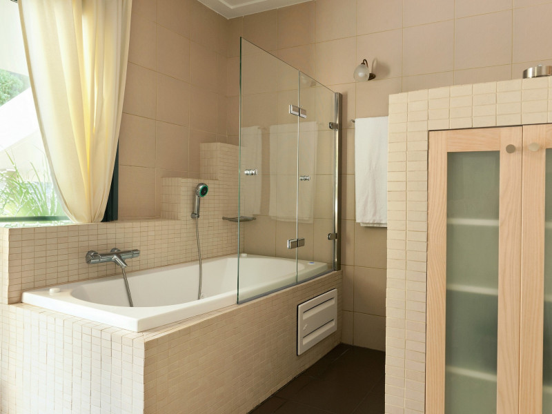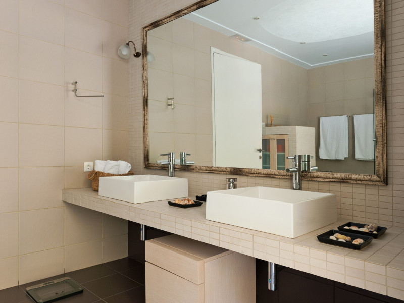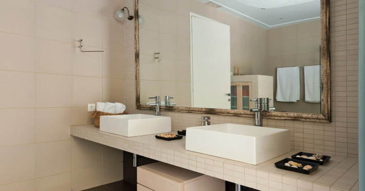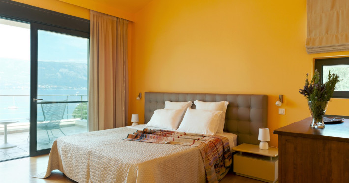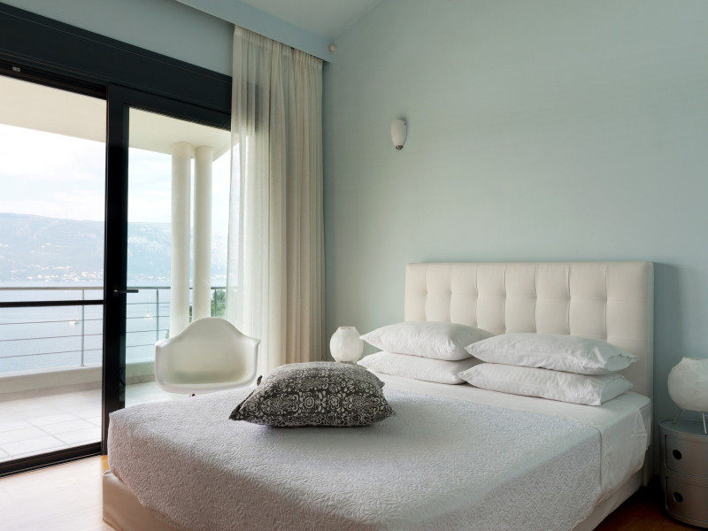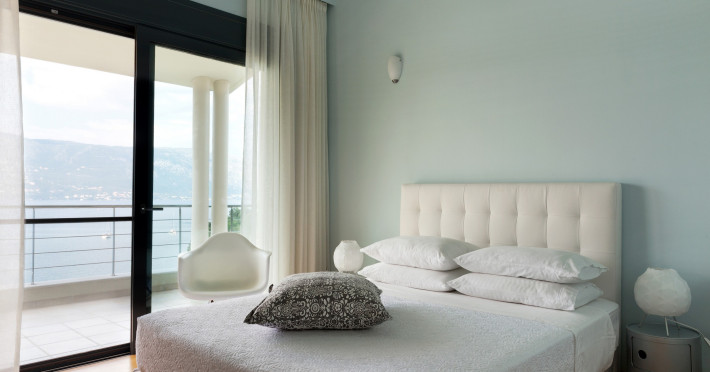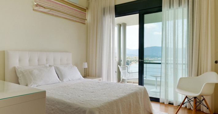 the sea, whereas the main bathroom has view and access to a large terrace and a