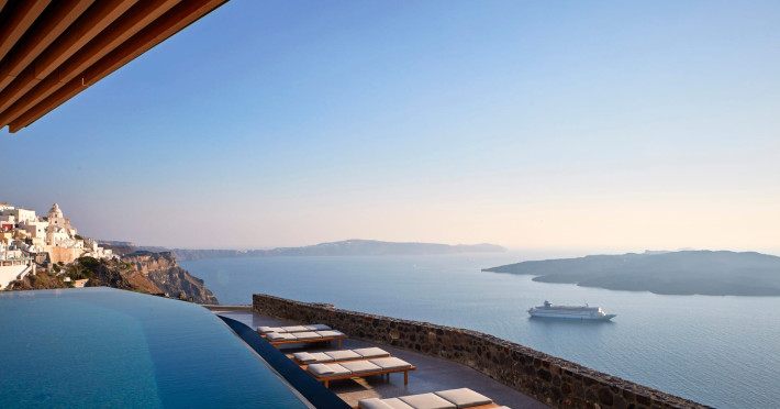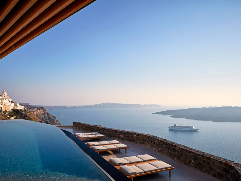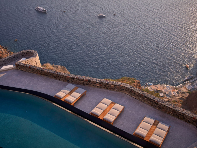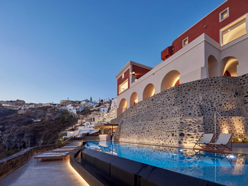Nestled in the heart of Fira, Villa Bordeaux offers an unparalleled experience with its luxury suites, each reflecting the timeless beauty of Cycladic architecture. The Villa features four unique suites: two with private pools, a maisonette and an open-plan suite. Each suite is thoughtfully designed with premium amenities and luxurious touches.Villa Bordeaux is housed in a beautifully restored neoclassical building that merges historic charm with modern comforts. The spacious, elegantly appointed suites are designed to provide a refined and exceptional stay, with high-quality furnishings and amenities.To further enhance your visit, the Villa includes a renowned fine dining restaurant that offers panoramic sea views and stunning sunsets, ensuring a memorable dining experience.Discover breathtaking views of the Caldera and enjoy a tranquil atmosphere at Villa Bordeaux, creating unforgettable memories in Santorini.