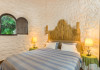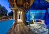 features a hanging day bed with mosquito net and above this, is the fully