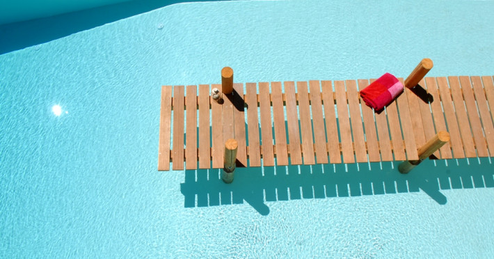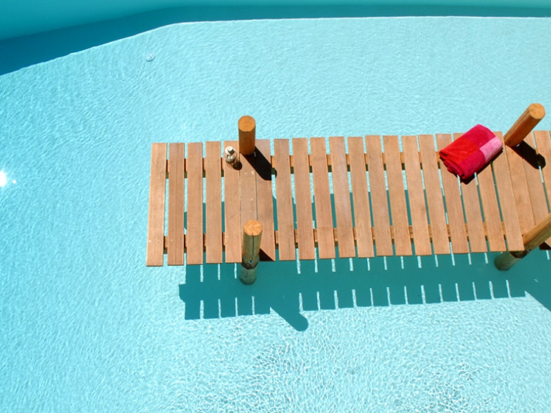 pool itself, gently sloping from a water depth of just 10cm, a wooden