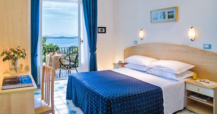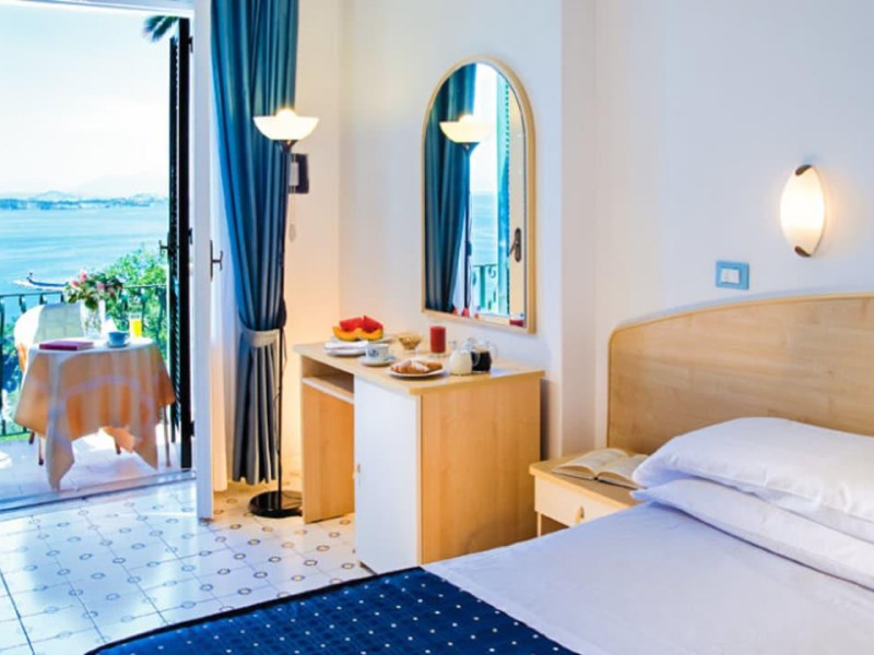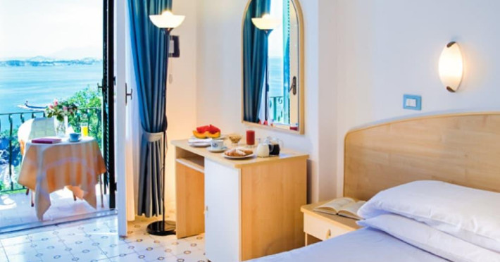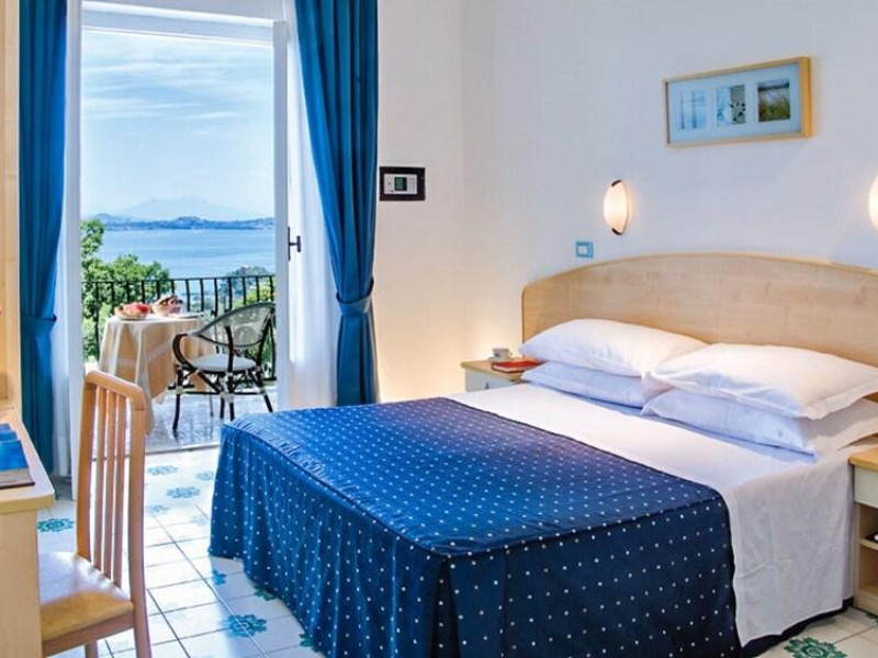 They say that here at the Hotel Villa Ireos there is the most beautiful view of the Island of Ischia. Judge You!Certainly the charming and quiet location in which we are located is the best guarantee for an unforgettable stay on the Green Island. We are located in the area of the Oak, a few meters from the marble plaque that in the last century delimited The border between the city of Ischia and the University of Casamicciola. In practice, we are less than five minutes by taxi or bus from the Port of Ischia and, at the same time, on a hill that in addition to isolating us from any form of confusion, gives us a breathtaking view from the Domitian coast to Capri (including the Gulf of Naples).All our rooms, spacious and simply furnished, enjoy sea view and air conditioning and will give you the pleasure of waking up overlooking the side where the sun rises, behind the Aragonese Castle. You can choose between standard, comfort and superior, all with hairdryer, TV, safe, mini bar and wi-fi. Some comfort rooms, located on the ground floor, have their own terrace/ garden; others, on the first floor, have balconies.Your day will begin with a hearty breakfast served at the buffet, with traditional coffee bar. For dinner, we invite you to try our restaurant on the panoramic terrace, which offers a spectacular view of the island and the Gulf of Naples. Our chef has prepared an la carte menu that uses only fresh and seasonal ingredients, ensuring a variety of authentic and delicious flavors. You can choose from a wide selection of appetizers, first courses, main courses and desserts, which will satisfy all your tastes. Remarks: Rates do not include any local city tax and resort fee that must be paid by the final customer on-site directly to the hotel. Bedding preferences are not guaranteed and are subject to supplier availability. Check-in from 14:00 , Check-in to 23:00 , Check-out from 07:00 , Check-out to 11:00 , Front Desk To 23:00