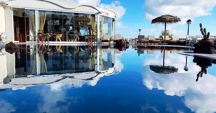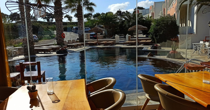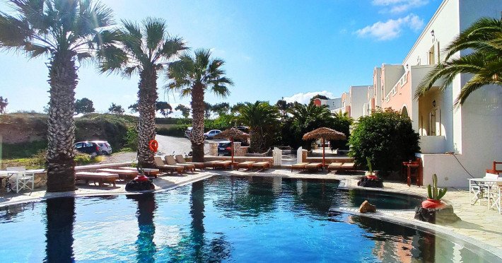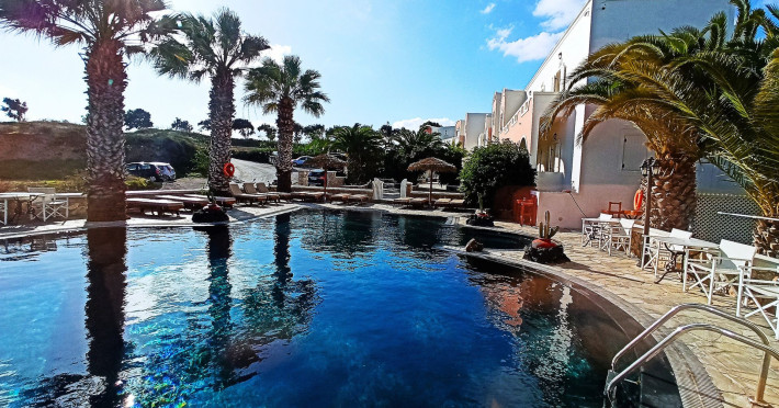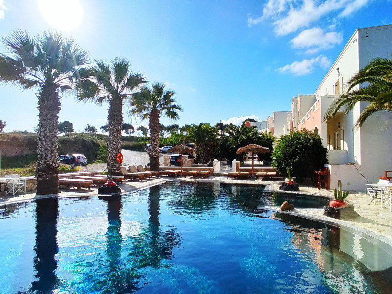 Villa Manos Rooms and Apartments in Santorini Island that is open all year!!Villa Manos in Santorini Island are traditional yet newly built Rooms and Apartments.They are kept in spotless condition and family run and can be found in the center of Santorini island.As soon as you arrive at Villa Manos, we will supply you with a free map of Santorini to help you discover the most beautiful areas and understand the history of our island. Santorini is deep in history and myth and nothing can describe the enchanting magic of this island. We can also arrange very romantic Wedding Ceremonies in the quaint church of Santa Irini on the cliffs of Santorini Island.Villa Manos Rooms and Apartments can be found in the area of Karterados, with its’ traditional square, taverns, the bakeries and small shops. A few minutes walk away is a fast developing shopping area with a large supermarket, florist, great cafes, restaurants, boutiques, bars and much more.Villa Manos Rooms and Apartments are within walking distance of Fira the capital of Santorini Island. One can find the local bus stop right outside Villa Manos.