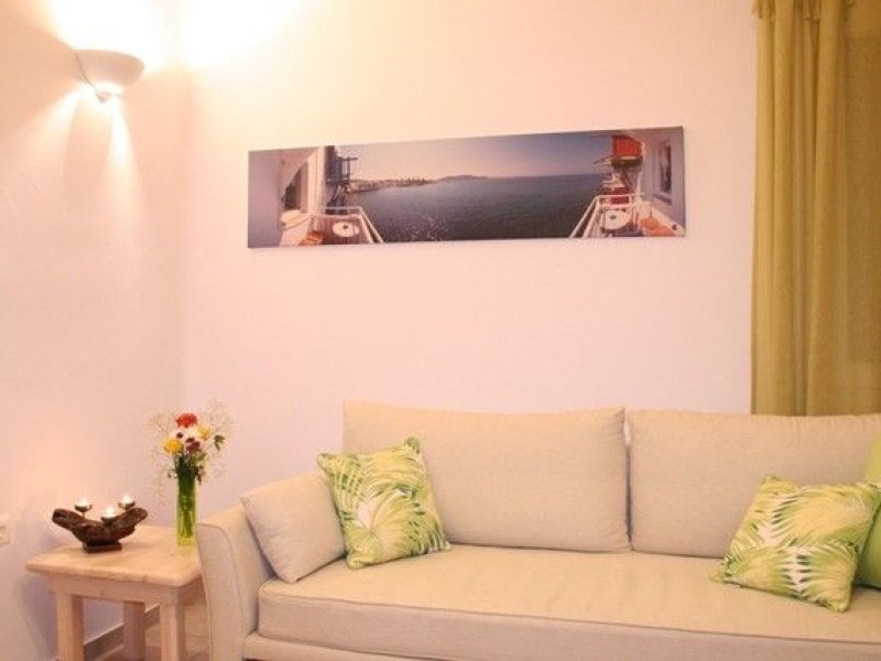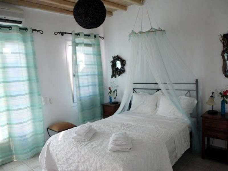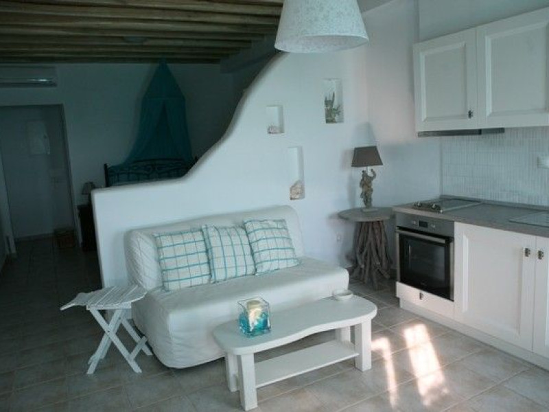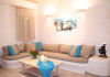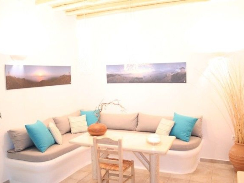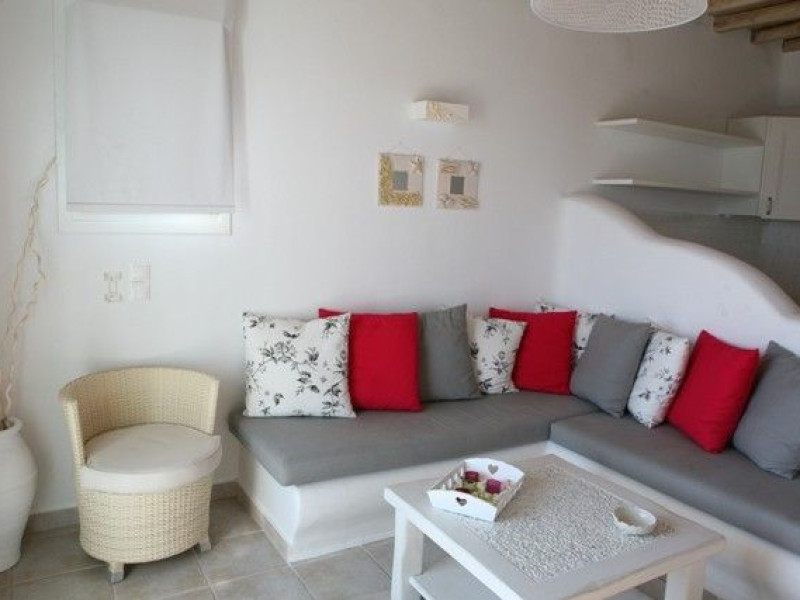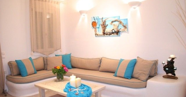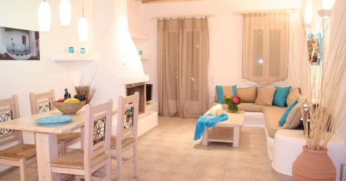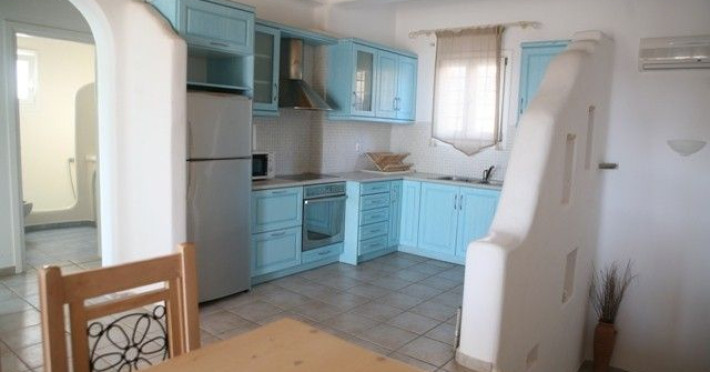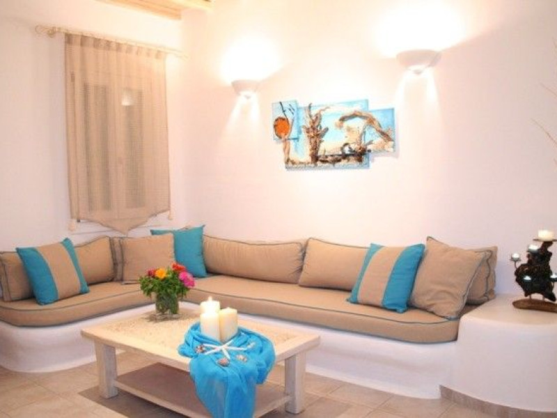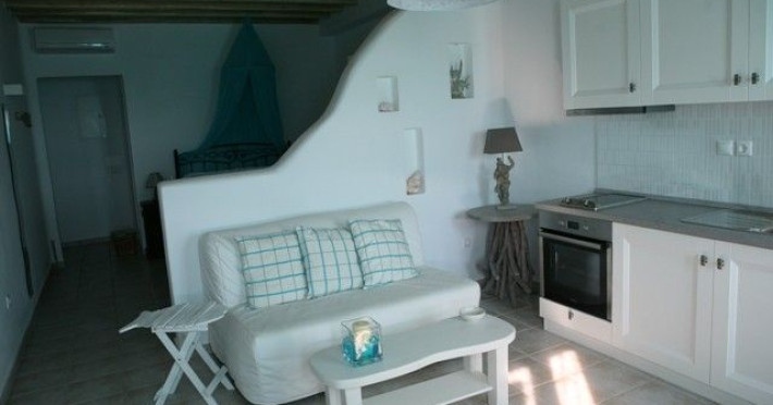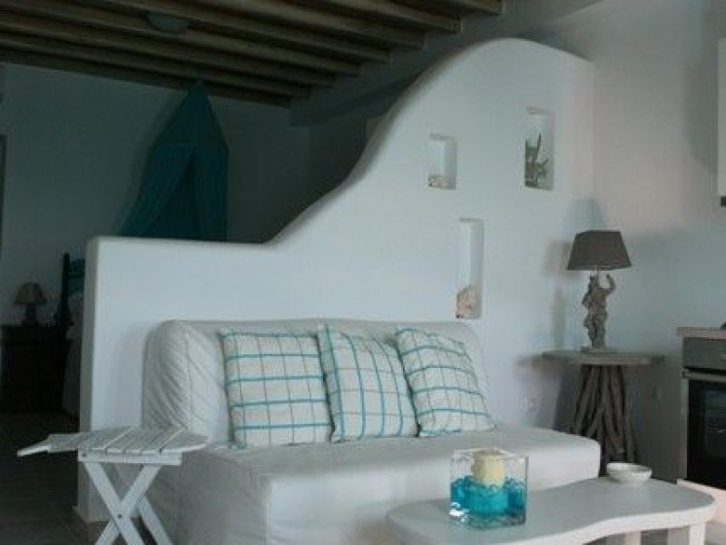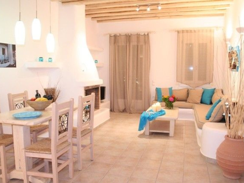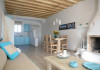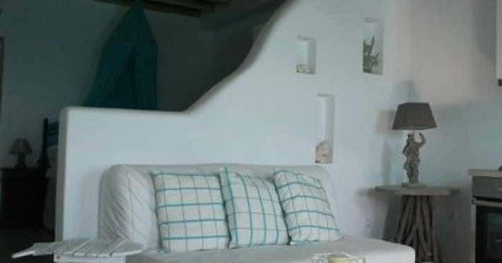 Villa Meliti is a newly built hotel complex. Its consisting of 6 apartments capable to accommodate 2-5 persons and 1 studio for 2-4 persons.It took its name from Nereid Meliti who, according Greek Mythology, was one of the prettiest daughters of Nireus God of the Sea. The complex is located at the famous settlement of Platis Gialos, one of the finest beach resorts in Mykonos island.Luxurious decorated with great attention to Mykonian architecture, all apartments and the studio of Villa Meliti feature a spacious, elegant and comfortable living room, one or two bedrooms, a modern and fully equipeded kitchen with stylist dining area and cozy bathrooms.The unique decoration of each apartment consists of wood roofs, built-in coaches with big bolsters in summer colors, built-in showers according to the mykonian architecture, hand made furnitures, fire places and private verandas with breathtaking view.