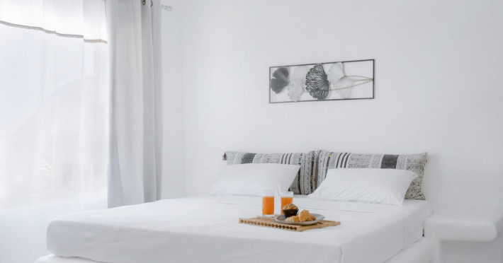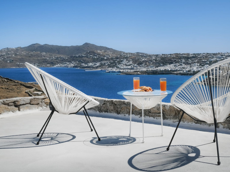 When luxurious comfort and spectacular views are at the top of your list of holiday wants, you seek out a suite like Villa Infinita I & II.Enjoy uncompromising accommodations with extraordinary views. A beautiful beach( Ornos) is just a short walking distance, while Mykonos Town is a quick, easy drive. Greek holiday dreams begin at a place like Vista Infinita I & II.The space: This elegantly furnished holiday suite for up to three guests (plus a baby at our babycot) awaits your arrival on our fabulous island. Vista Infinita I & II traditional Cycladic architecture is designed with modern features to create a premium accommodation. Its interiors inspire relaxation, so sit back, relax, and enjoy everything this home has to offer.Vista Infinita I is 35sqm while Vista Infinita II is 42sqm. There is parking space outside the studios. Wi-Fi on premises is free.At the exit of the house there is a seating couch which offers relaxation while enjoying the breathtaking views. Both beds are king size while there are sofa bed for the 3rd person in each studio.
