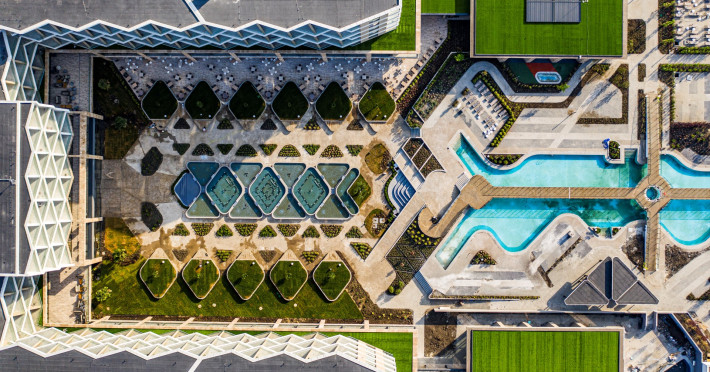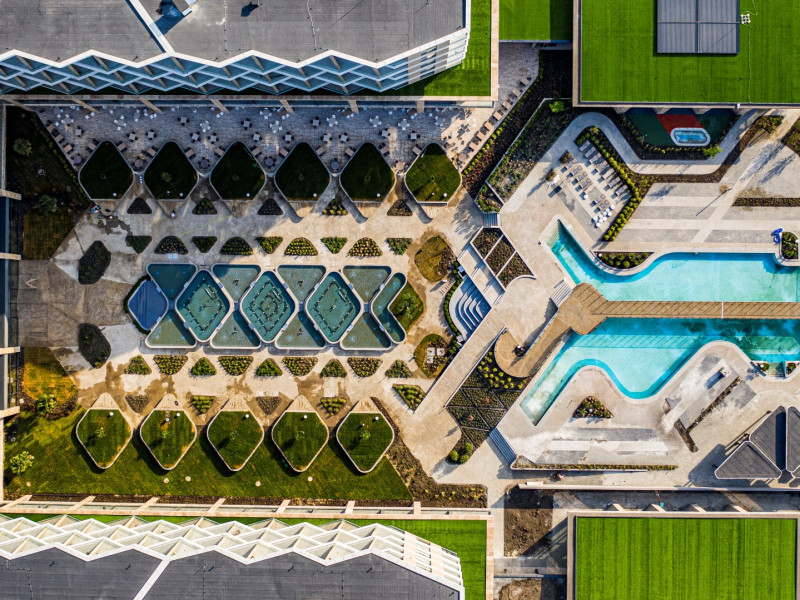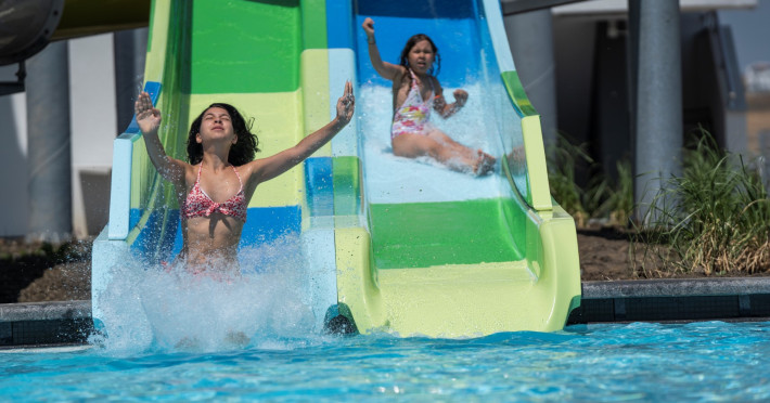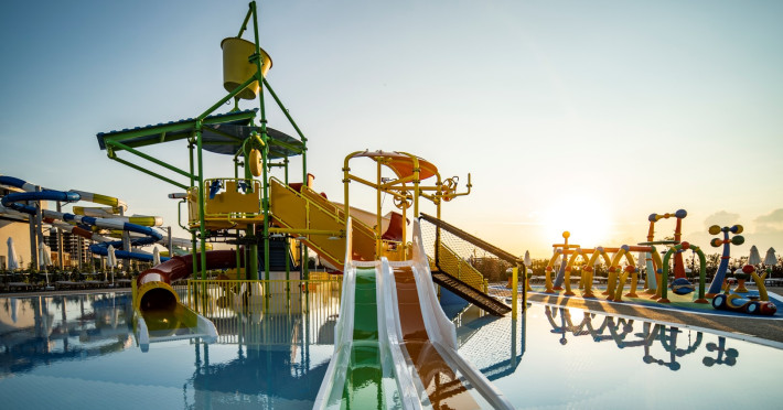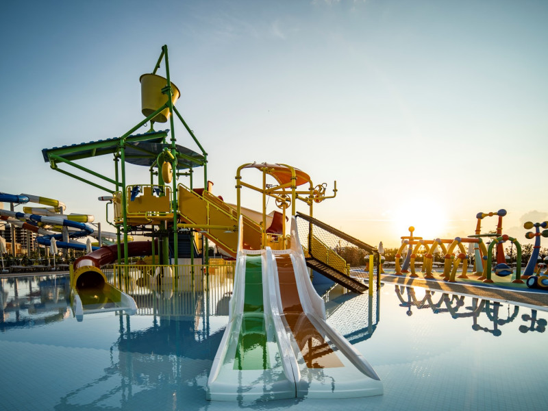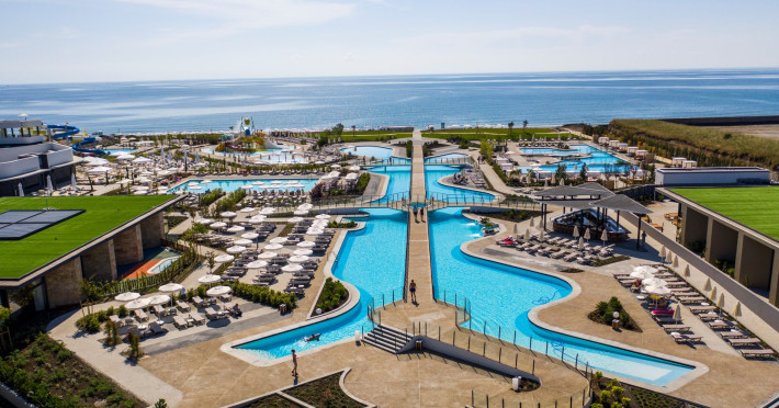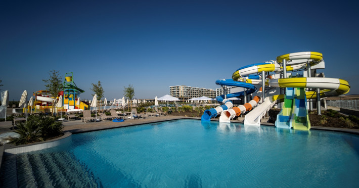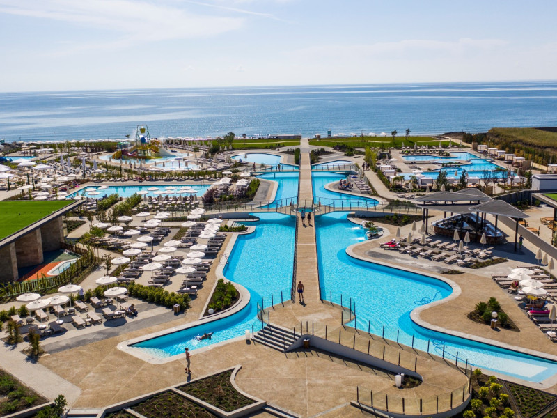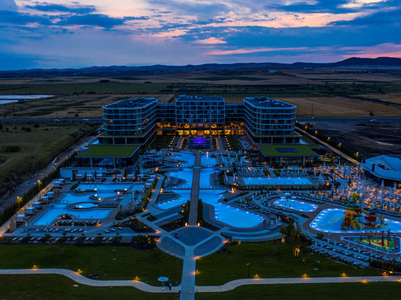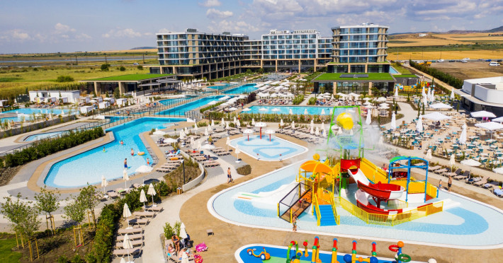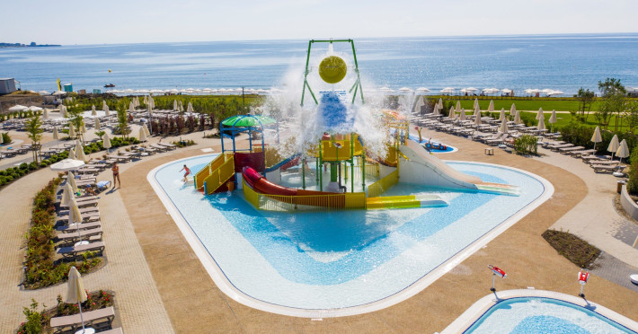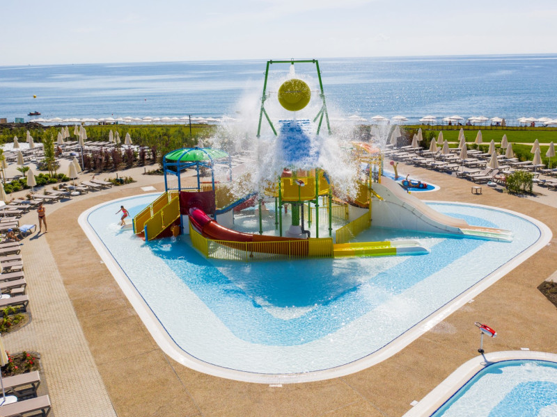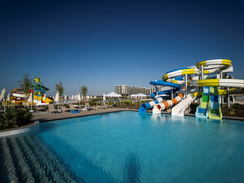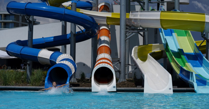 - piscina in aer liber (1812m2) cu 4 tobogane