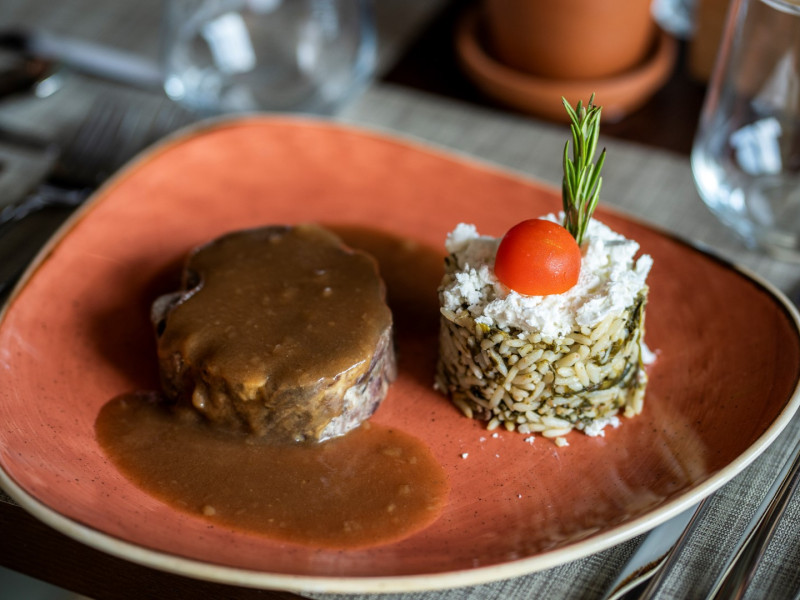 In restaurantul italian A la Carte / bucataria mediteraneana, 4 zile pe saptamana, intre 15.05-15.09 / - cina 19:00 - 21:00