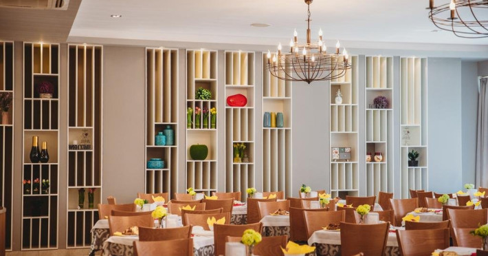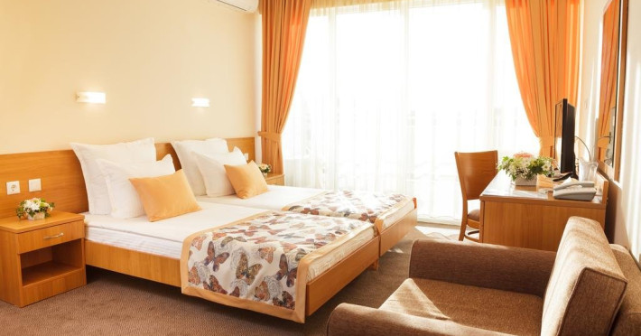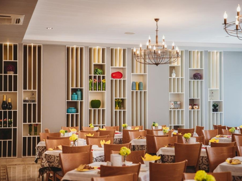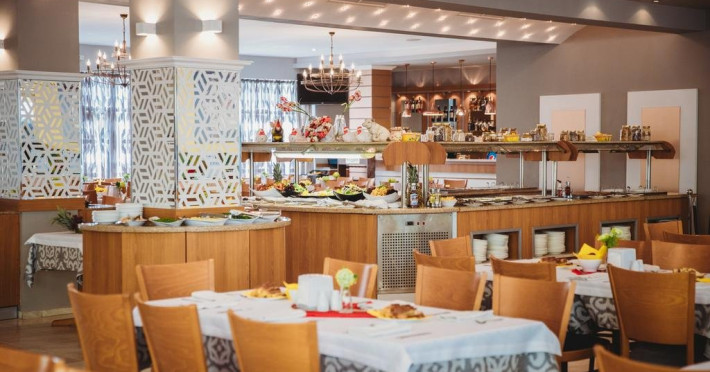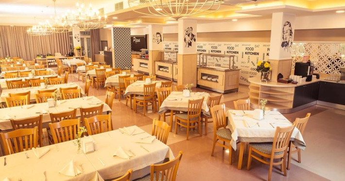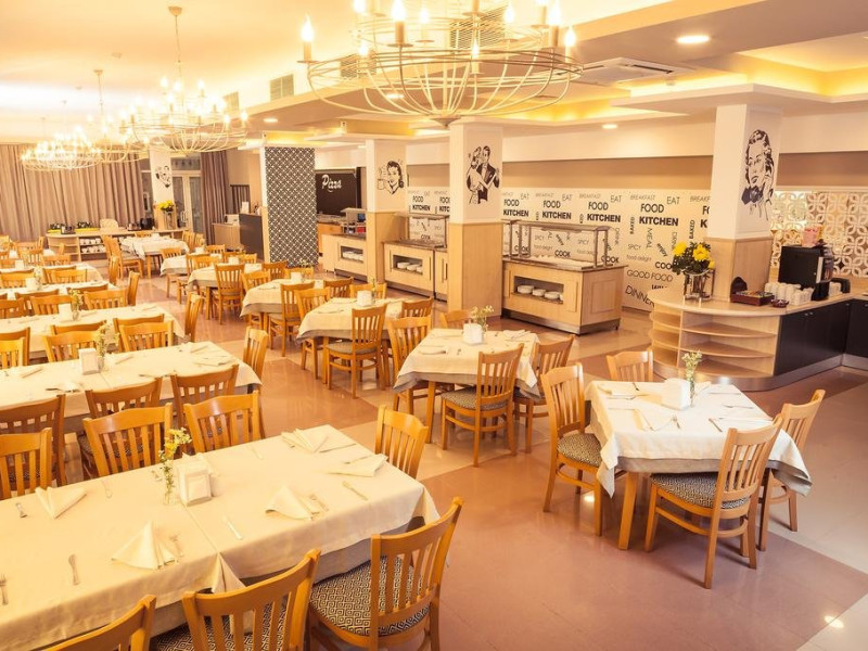 Mancare si bauturi: Restaurant principal - Mic dejun tip bufet: 07:30-10:00 h - diverse fructe si legume proaspete, branzeturi, fulgi de porumb, cornuri, clatite, oua, bauturi reci si calde. - Pranz tip bufet: 12:30-14:00 - varietate de preparate calde si reci, supe, lactate, fructe de sezon, o varietate bogata de preparate din bucataria bulgara si internationala, deserturi, bauturi alcoolice si nealcoolice. - Cina tip bufet: 18:30-21:00 - salate, varietate de preparate calde si reci, lactate, fructe si legume de sezon, o varietate bogata de preparate din bucataria bulgara si internationala, bauturi calde si racoritoare, vin la halba, bere la halba , alcool local si cocktail-uri.