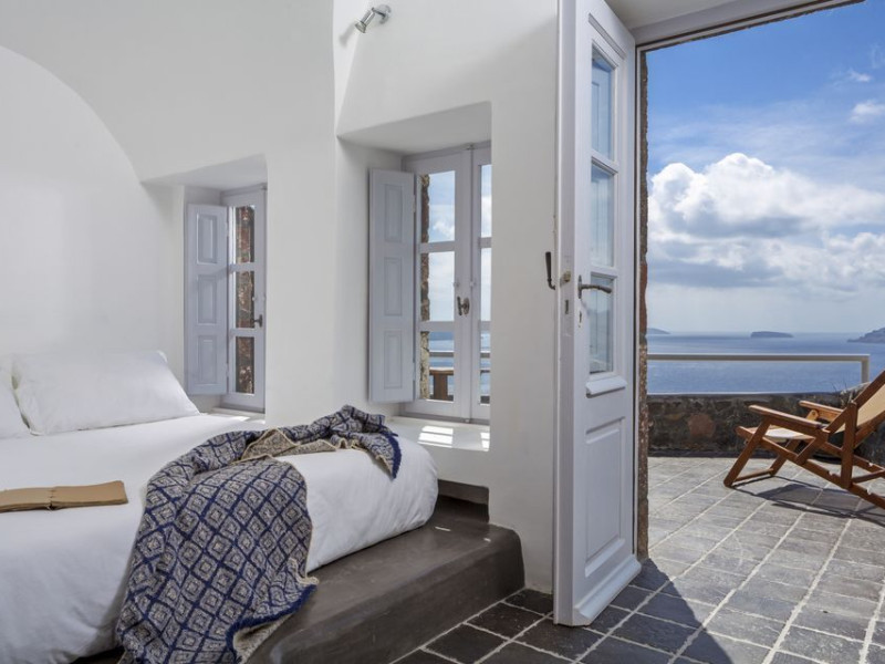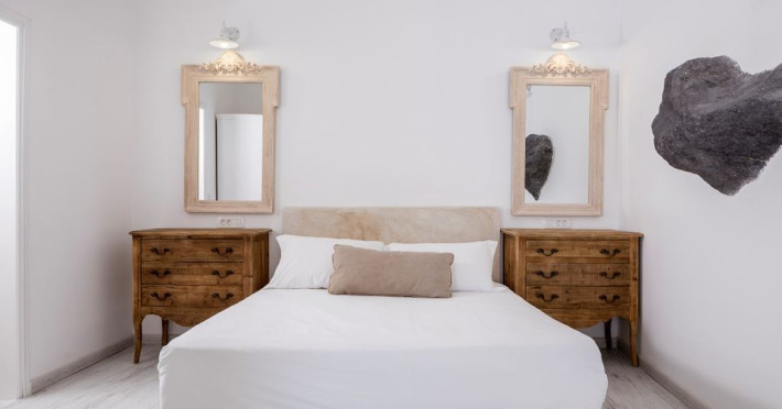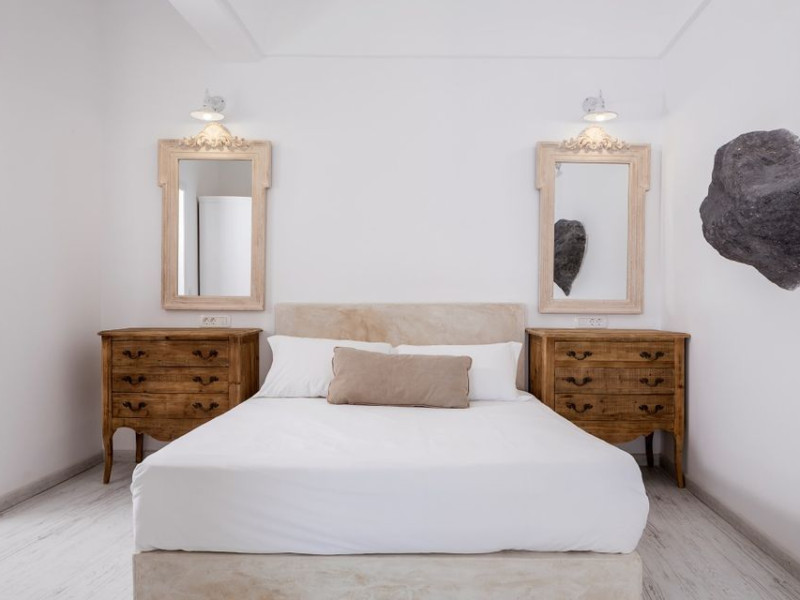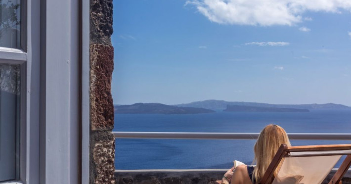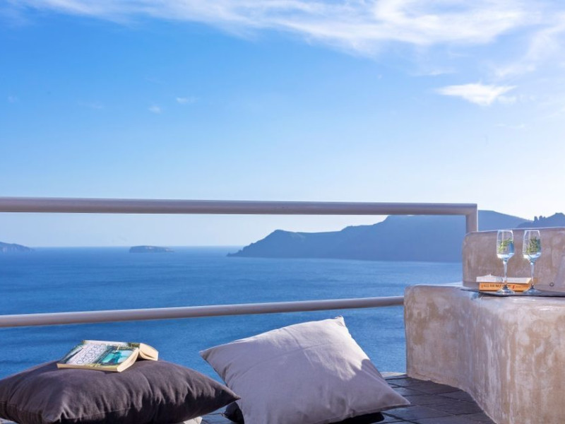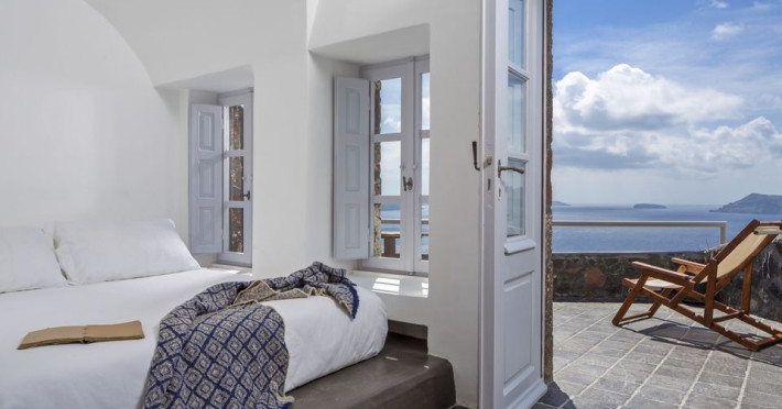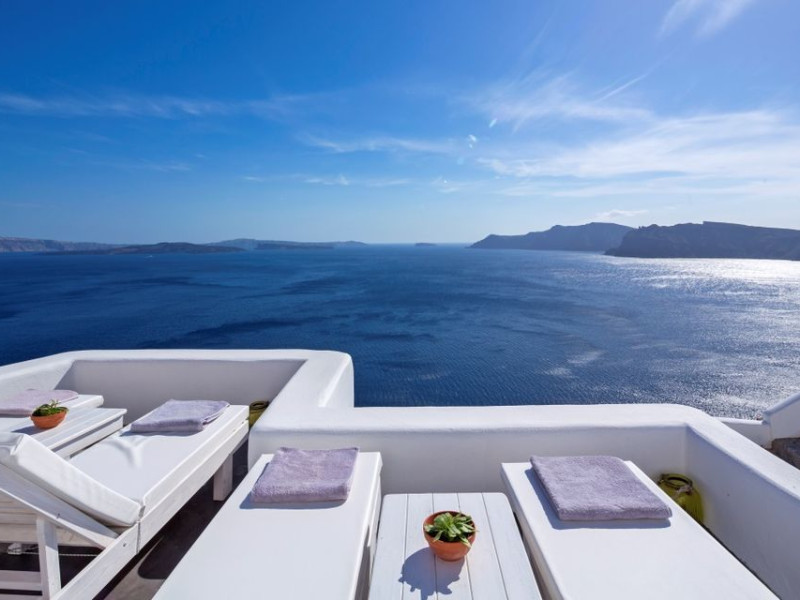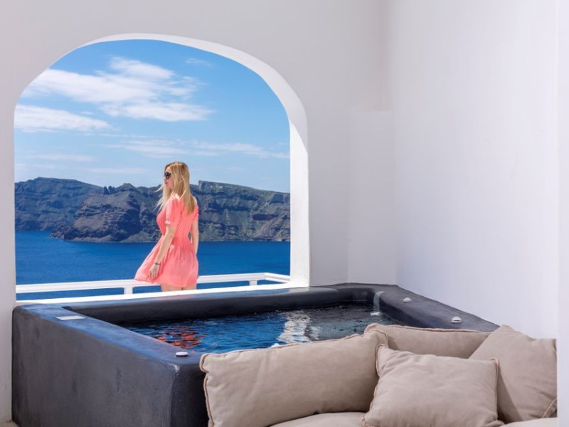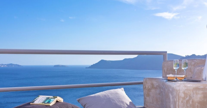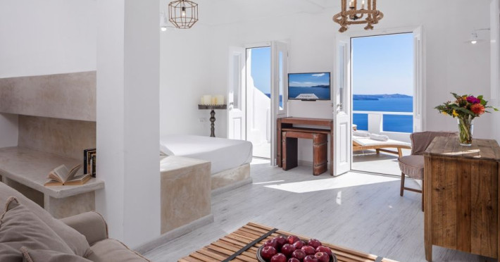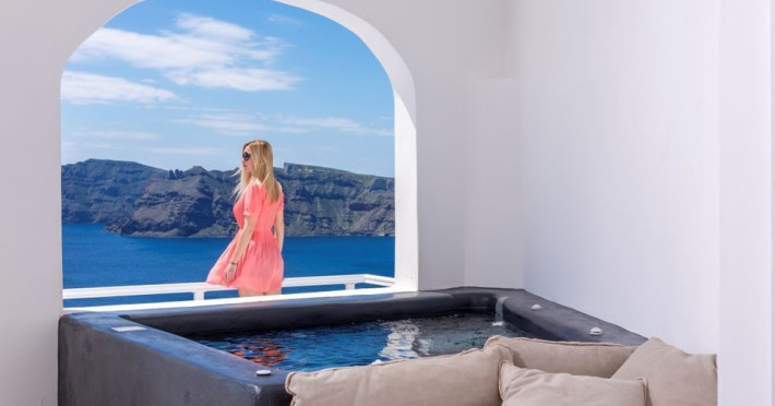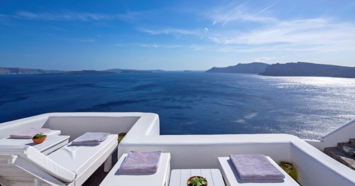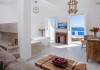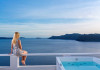 Indulge in the surreal view of the sea sparkling under the glorious Mediterranean sun, the lunar rocks dropping sheer to the sea-filled crater, the cruise ships peacefully floating in the cobalt blue waters, the dazzling white cube-like houses daringly perched on the edge of the steep cliffs, and the dormant volcano standing as a silent sentinel, guarding the secret of the lost Atlantis. Words are not enough to describe the divine natural beauty of Aegean’s black diamond. Santorini -repeatedly voted as the most beautiful island in the world by travelers and travel experts- is certainly the jewel in the crown of all Greek islands, with its unearthly raw power, alluring energy, and dramatic landscape.The White Pearl Villas are seductively nestled on the cliffs of Oia Santorini, where the awe-inspiring sunset dazzles the eye of the beholder with its unreal fiery mix of red, blue, yellow, and orange hues and the infinity of the azure water stretching to the horizon. The villas promise a once-in-a-lifetime vacation experience, with their breathtaking views of Caldera, the volcano and the Aegean, their stunning architecture, immaculate aesthetics, and unsurpassed comfort, style and amenities. Each villa has a unique layout –being carved in the volcanic rocks-, indoor and outdoor Jacuzzis and plunge pools, magically hidden fiber optic lighting, ultra-romantic ambiance, a wealth of amenities, and sensational vistas. If you are seeking for villa accommodation in Oia Santorini, look no further than the stunning White Pearl Villas; where ultimate privacy, luxury and style redefine island chic.