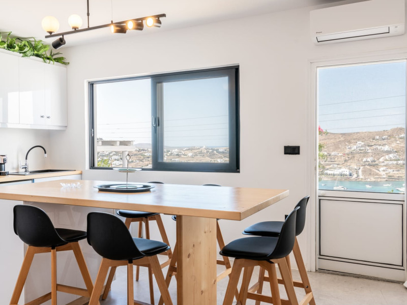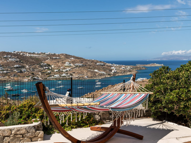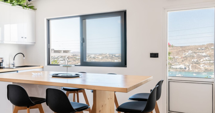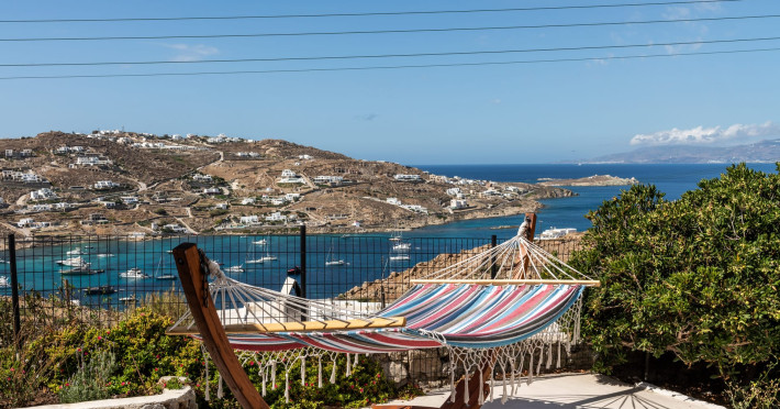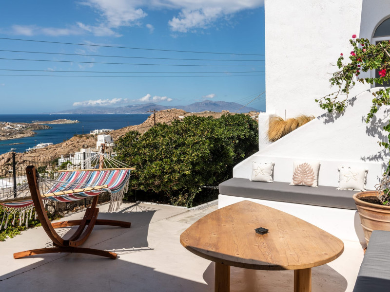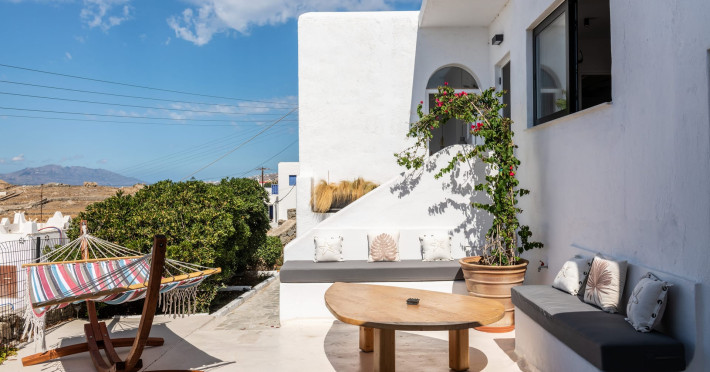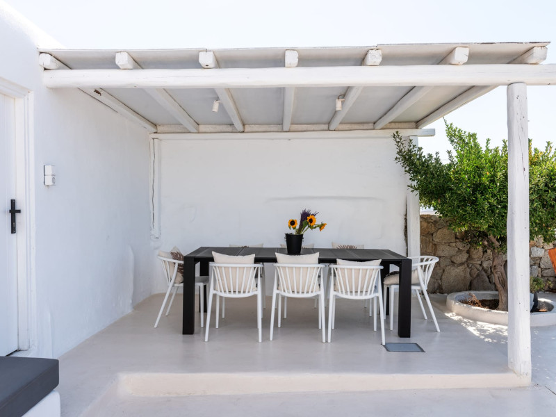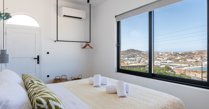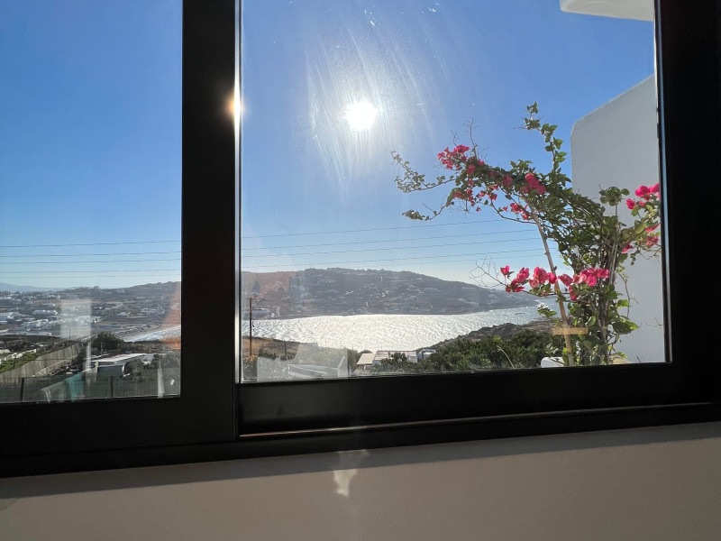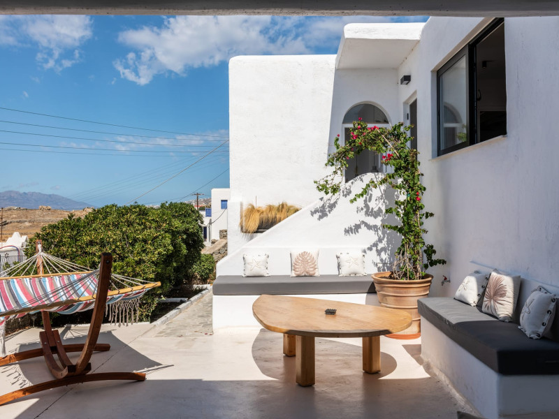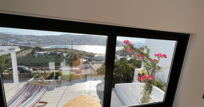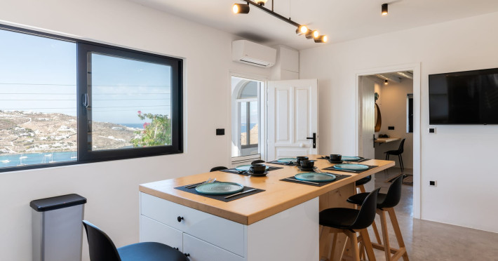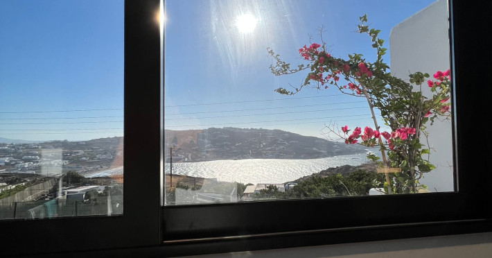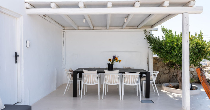 This 4 bedroom amazing house is situated moments from Ornos beach, the famous windsurfing/kitesurfing beach of Korfos and Mykonos town is only 3 minutes drive away or a 25-minute walk.There is view to the Aegean sea and Korfos beach. The house accommodates 8 guests and has also a big kitchen which is fully equipped with all the necessary appliances to prepare a meal, including a Nespresso coffee machine, a dishwasher, and a stove.One of the 4 bedrooms is situated outside the main house and has complete privacy along with beautiful sunset and sea views.