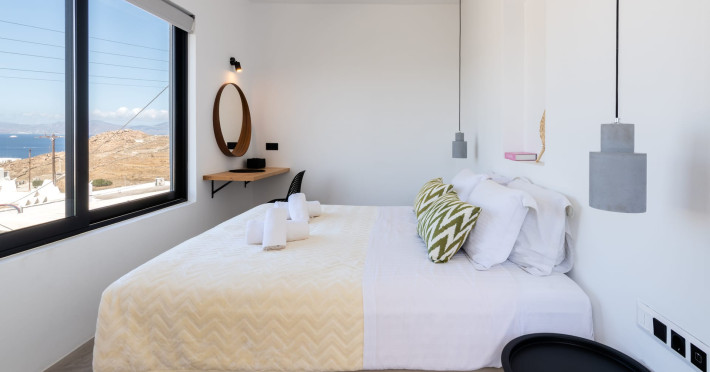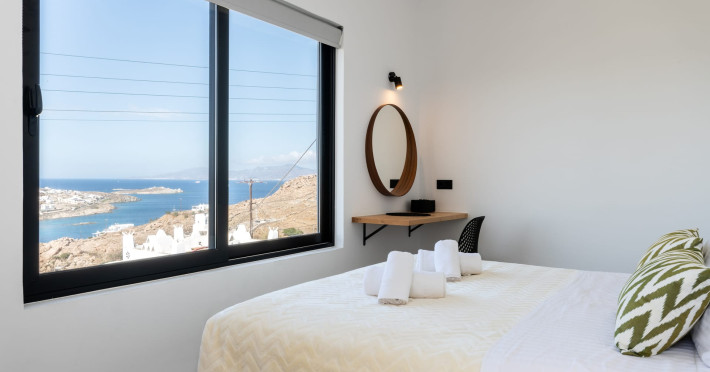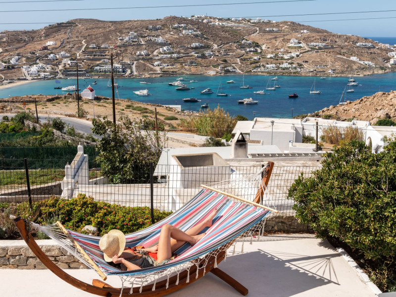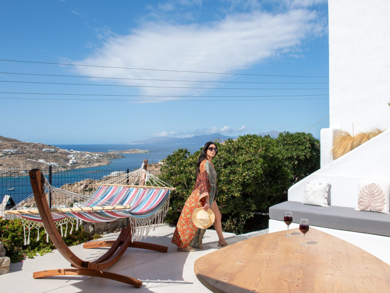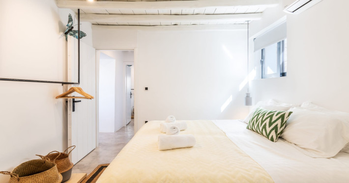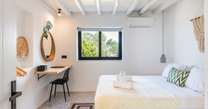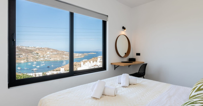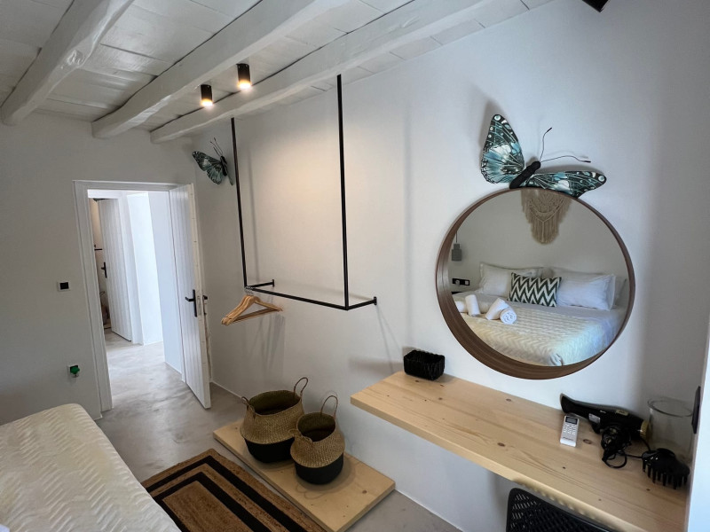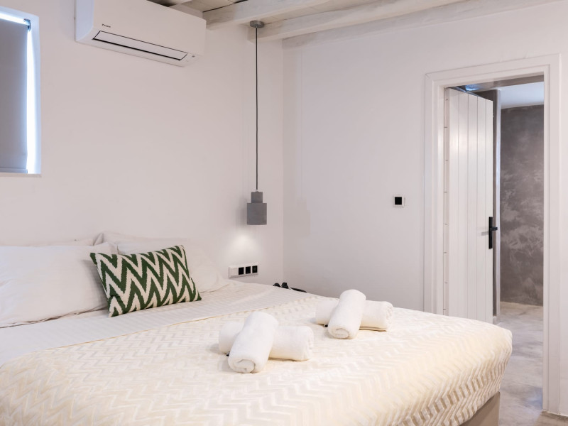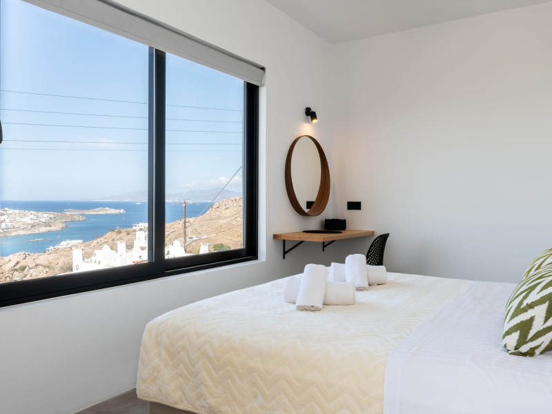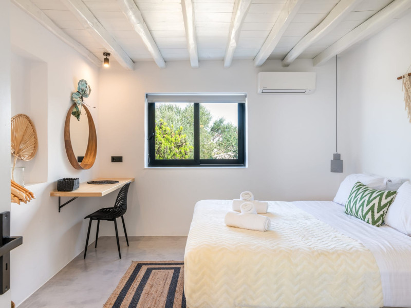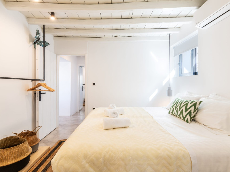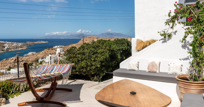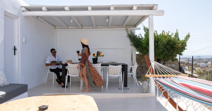 This 4 bedroom amazing house is situated moments from Ornos beach, the famous windsurfing/kitesurfing beach of Korfos and Mykonos town is only 3 minutes drive away or a 25-minute walk.There is view to the Aegean sea and Korfos beach. The house accommodates 8 guests and has also a big kitchen which is fully equipped with all the necessary appliances to prepare a meal, including a Nespresso coffee machine, a dishwasher, and a stove.One of the 4 bedrooms is situated outside the main house and has complete privacy along with beautiful sunset and sea views.