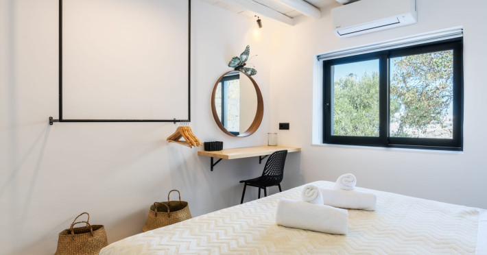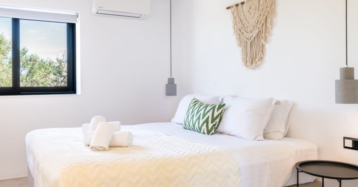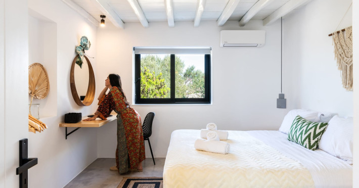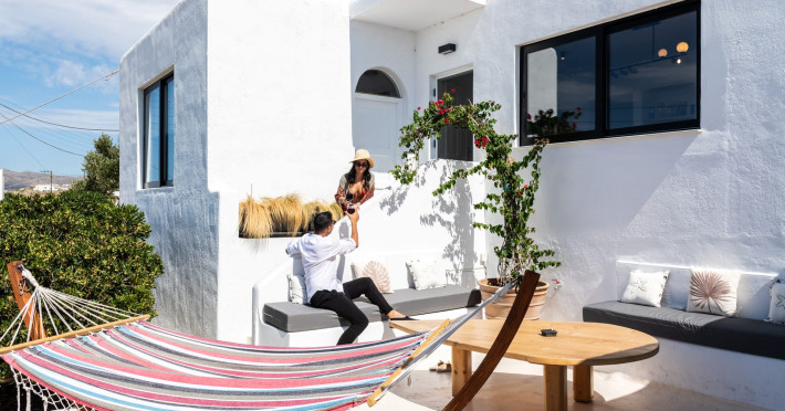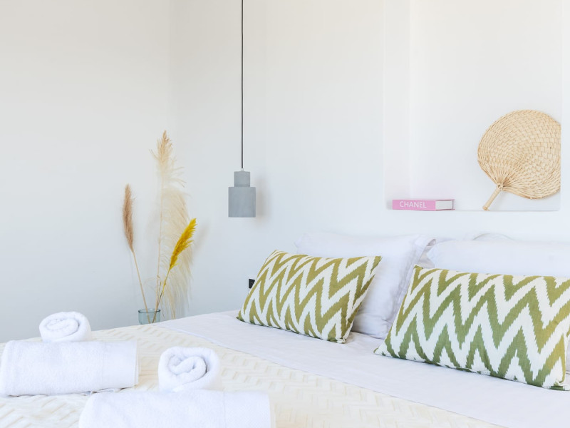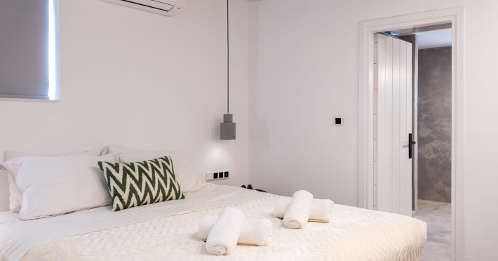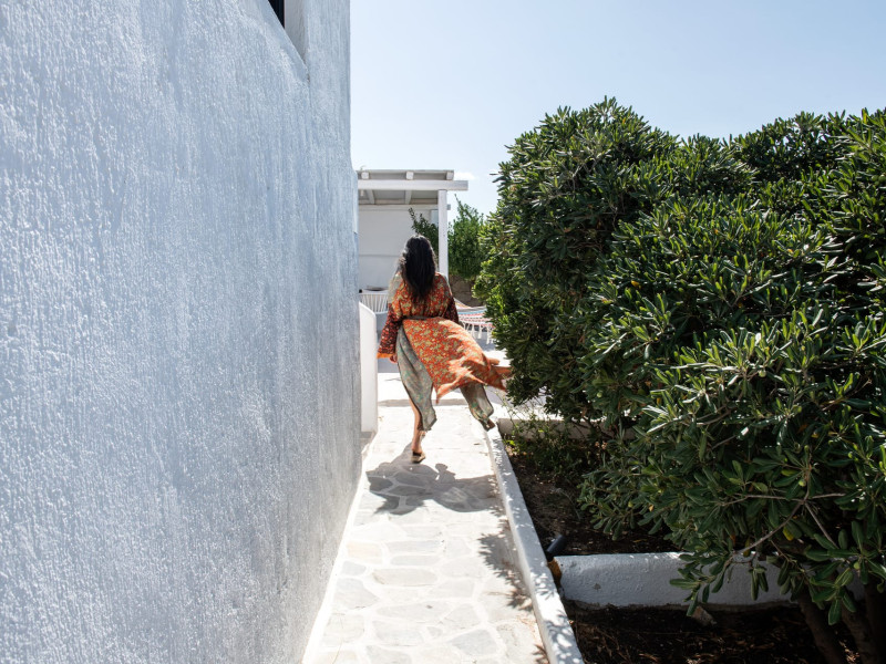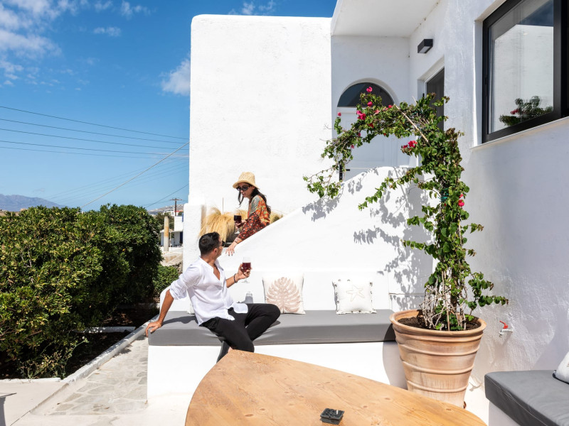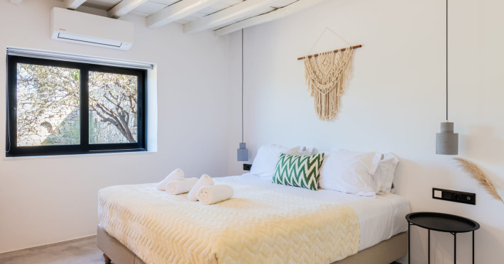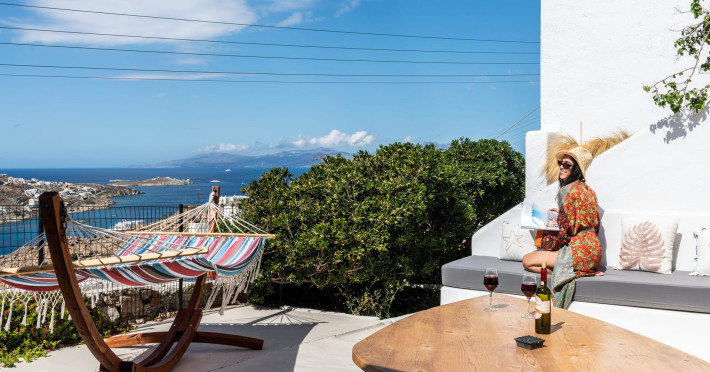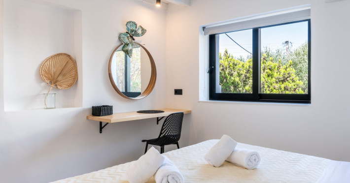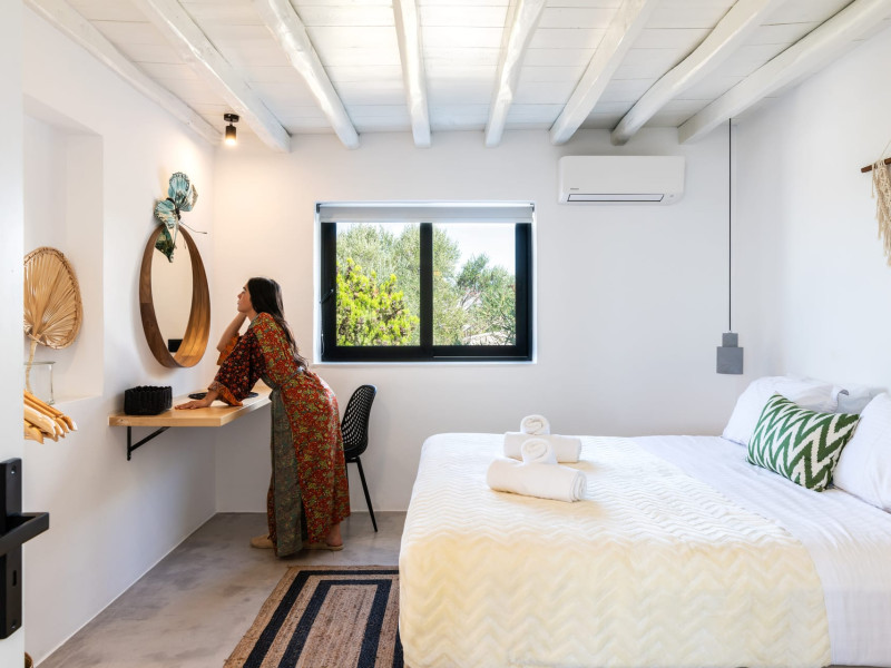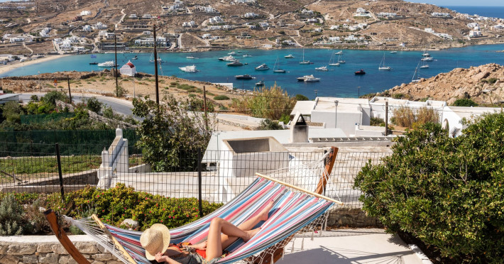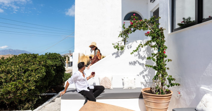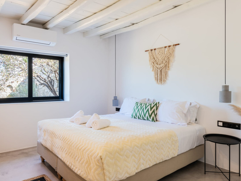 This 4 bedroom amazing house is situated moments from Ornos beach, the famous windsurfing/kitesurfing beach of Korfos and Mykonos town is only 3 minutes drive away or a 25-minute walk.There is view to the Aegean sea and Korfos beach. The house accommodates 8 guests and has also a big kitchen which is fully equipped with all the necessary appliances to prepare a meal, including a Nespresso coffee machine, a dishwasher, and a stove.One of the 4 bedrooms is situated outside the main house and has complete privacy along with beautiful sunset and sea views.