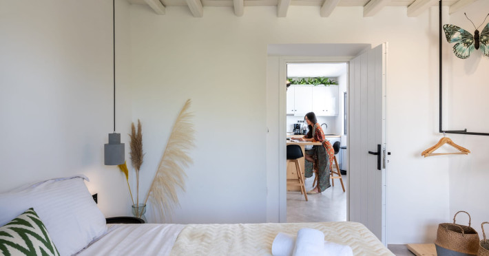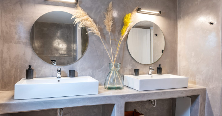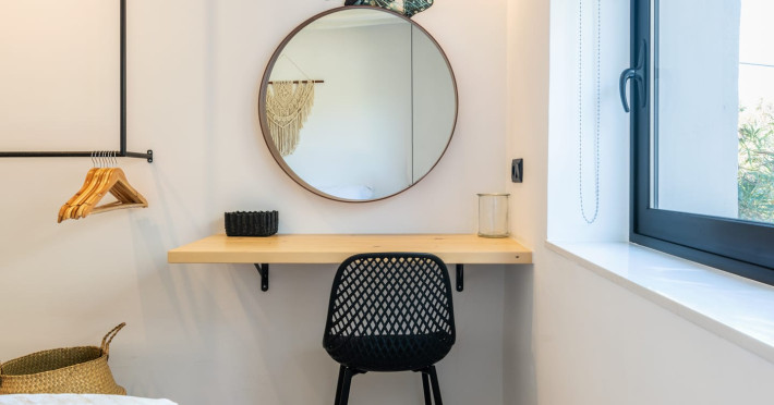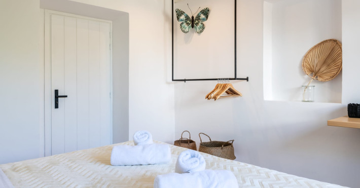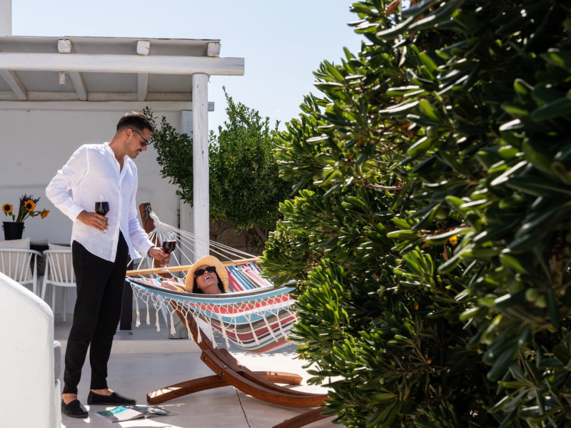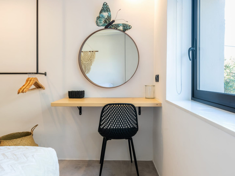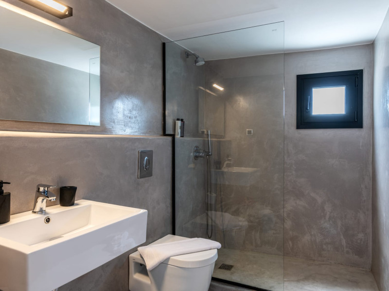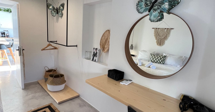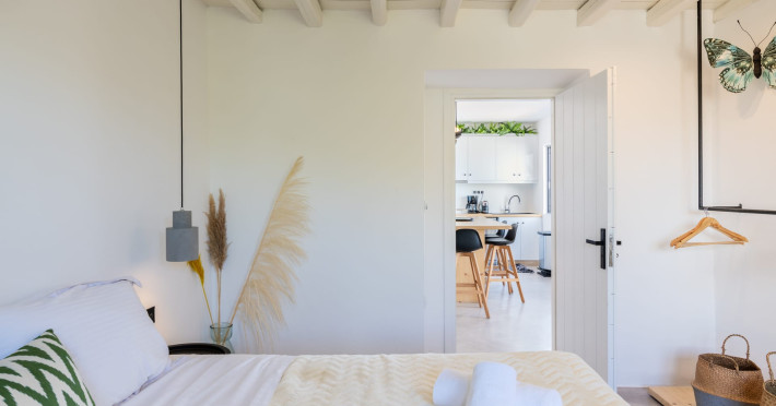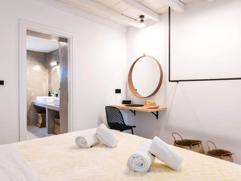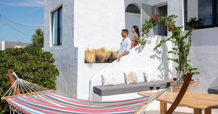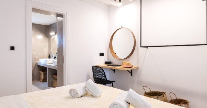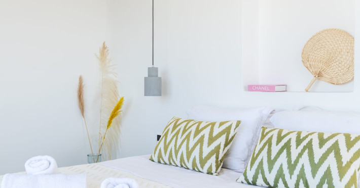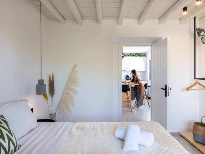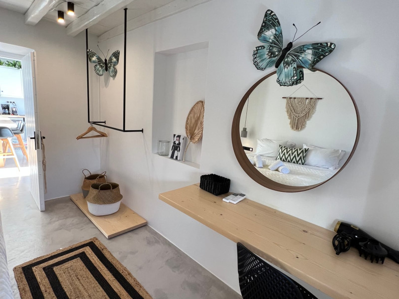 This 4 bedroom amazing house is situated moments from Ornos beach, the famous windsurfing/kitesurfing beach of Korfos and Mykonos town is only 3 minutes drive away or a 25-minute walk.There is view to the Aegean sea and Korfos beach. The house accommodates 8 guests and has also a big kitchen which is fully equipped with all the necessary appliances to prepare a meal, including a Nespresso coffee machine, a dishwasher, and a stove.One of the 4 bedrooms is situated outside the main house and has complete privacy along with beautiful sunset and sea views.