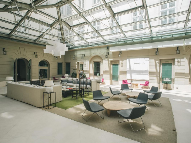 The Hotel Zenit Budapest Palace 4* is located in the heart of Budapest, in Pest city centre, next to Vaci Street and the cosmopolitan Vorsmarty Square, in the most famous and popular shopping area of Budapest. The Hotel occupies a unique building, constructed in 1820 by the famous Hungarian architect Mihaly Pollack, the creator of many of the citys buildings, including the National Museum. Fine dining is the other outstanding feature of the Hotel. Thanks to one of the most prestigious restaurateurs in Budapest, you can enjoy haute cuisine as entertainment, with our Show Cooking, the Ham Bar and the Cocktail Bar. In easy walking distance around the Hotel Zenit Budapest Palace, you will find squares, markets, monuments, and the River Danube, and metros and trams for exploring the city. The Zenit Budapest Palace, a strategic base for visiting the city. As well as its excellent location, Hotel Zenit Budapest Palace offers a wide range of high quality services. We have everything at your service to make your stay a pleasant experience, whether for business or pleasure. The main hall, crowned by a lantern, leads to all areas of the Hotel. *NTAK registration number: SZ19000751