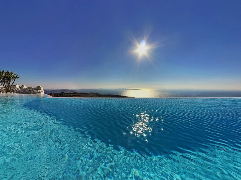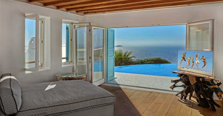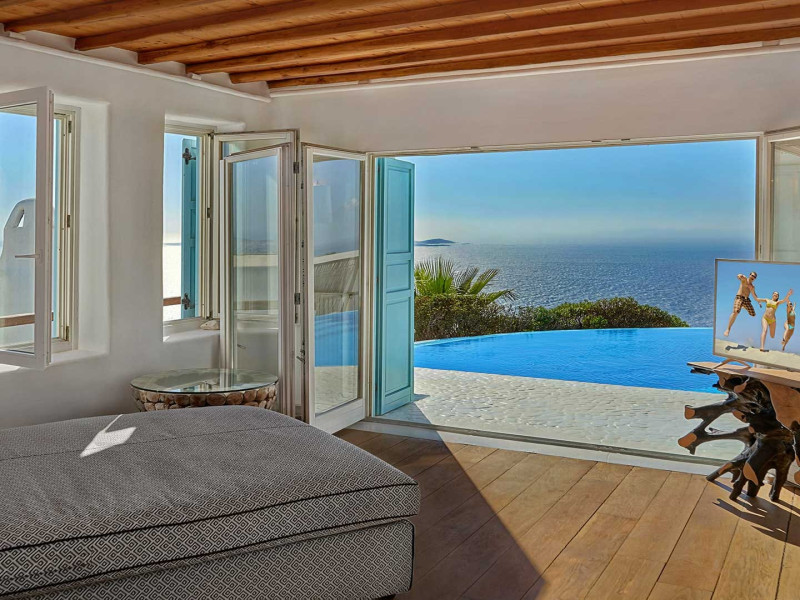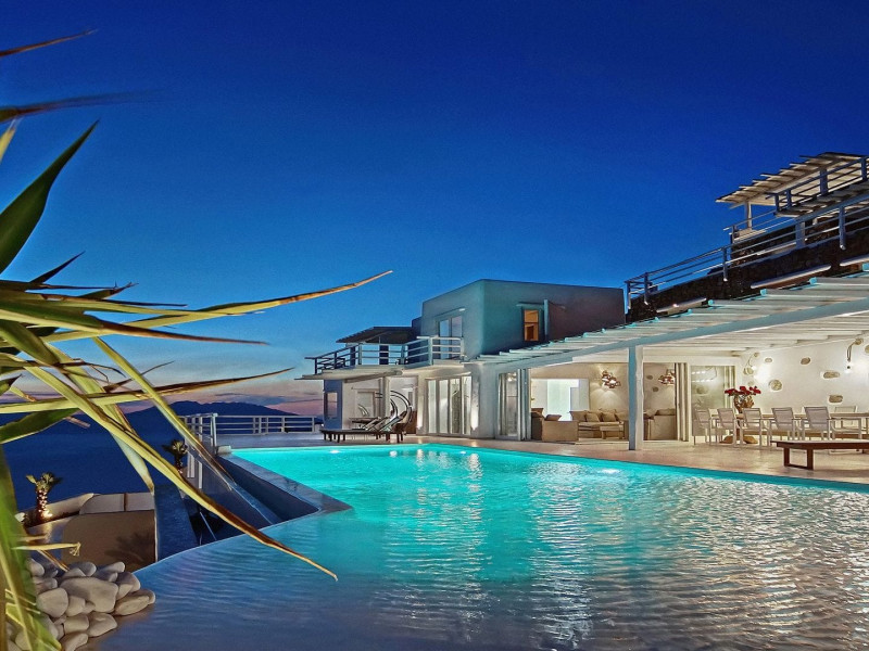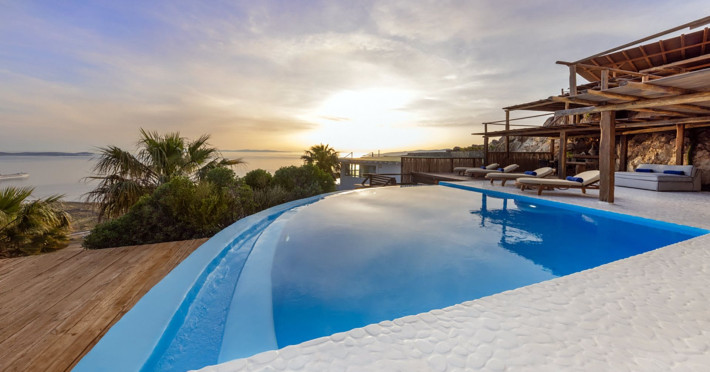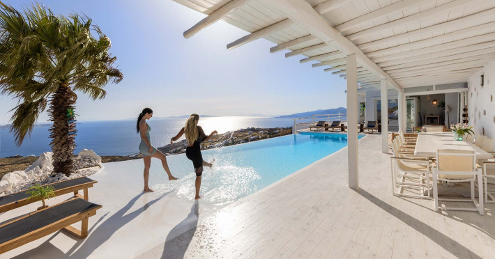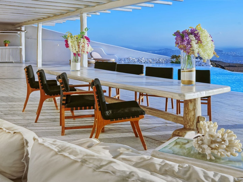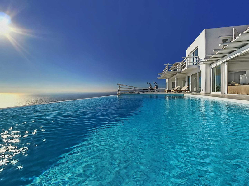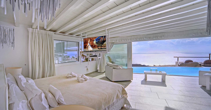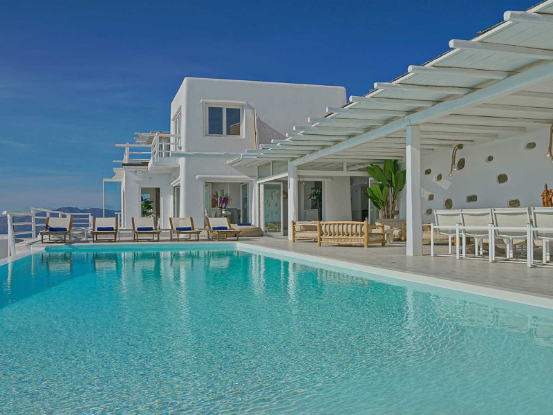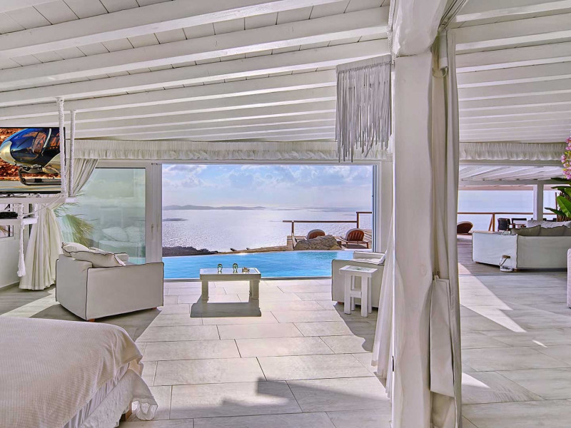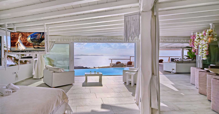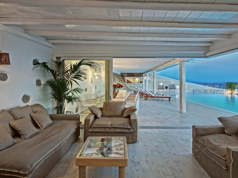 Panoramic Mykonos Luxury VillasEmbraced by the spectacular rocky coastal scenery of the picturesque area of Kastro in Mykonos Island in Greece, Zinas Mykonos luxury villas epitomize the ultimate luxury living experience while providing the highest degree of privacy and indulgence.Miraculously set amidst the emerald waters of the sea and the azure sky these utterly seductive Mykonos luxury Villas offer a heavenly retreat for couples seeking a one of a kind experience in some of the most exclusive private luxury villa rentals near Mykonos town.Idyllically situated on the top of the hill Zinas Villas in Mykonos seem to reach for the sky whilst enjoying commanding panoramic vistas of the endless horizon and the enchanting Mykonos town of the magnificent insular complex of the Cyclades in Greece.All luxury villa rentals with pool have been crafted and decorated to high standards of luxury and style with unique natural handmade furniture and impressive irreplaceable adornments meticulously collected from all heavens on earth by the owner himself, the well-known Greek fashion designer Panos Zinas, who also owns a glorious fashion boutique in Mykonos town supplying luxurious gowns, day dresses and beachwear.Unrivaled Luxury Villas in Mykonos for CouplesNuzzled amidst the gracious nature the unrivaled Zinas luxury villas in Mykonos harmoniously blend into the miraculous seascape providing an intimate hideaway for couples and discerning travelers in search for a heaven on earth. Brilliantly positioned in the scenic area of Kastro near Mykonos town these exclusive private villa rentals with pool have been brilliantly appointed and designed to ensure a prestigious holiday experience for all treasured guests.Zinas luxury accommodation in Mykonos offers the perfect setting for indulging holidays, exclusive honeymoons and romantic interludes in the captivating island of Mykonos of the Cyclades islands cluster in Greece.Couples can succumb to the serenity that beckons from the tranquility of the shimmering sea, immerse in the Jacuzzi as the sunset slowly fades over the horizon and relish a candle light dinner under the veil of stars as the sweet sea breeze gently caresses their face.