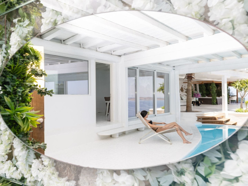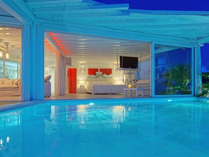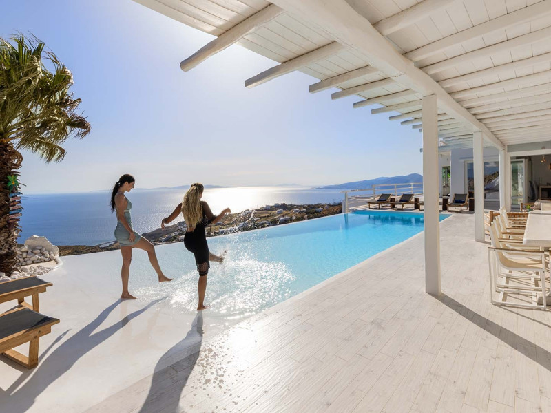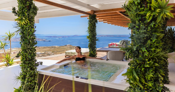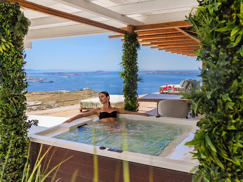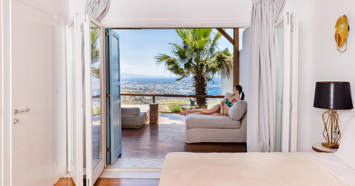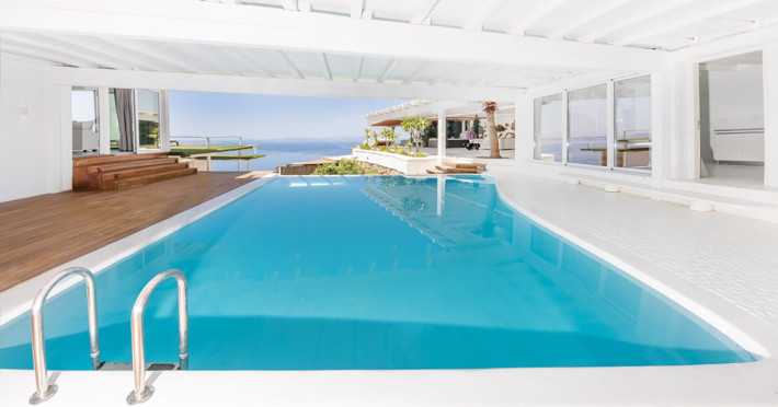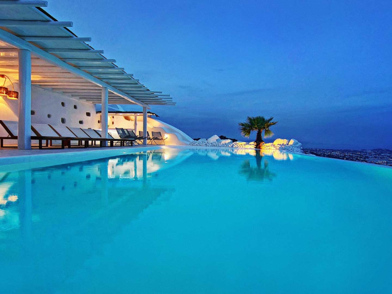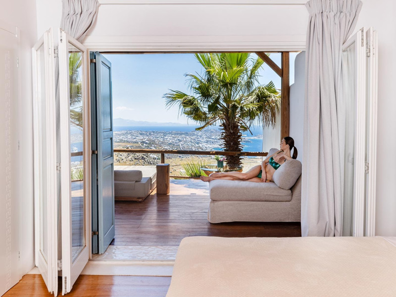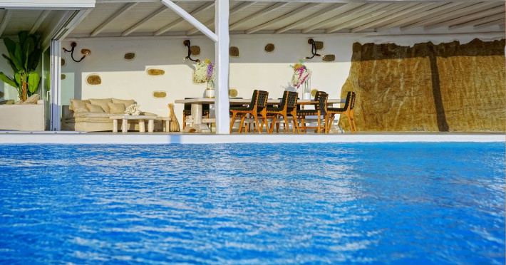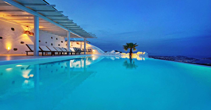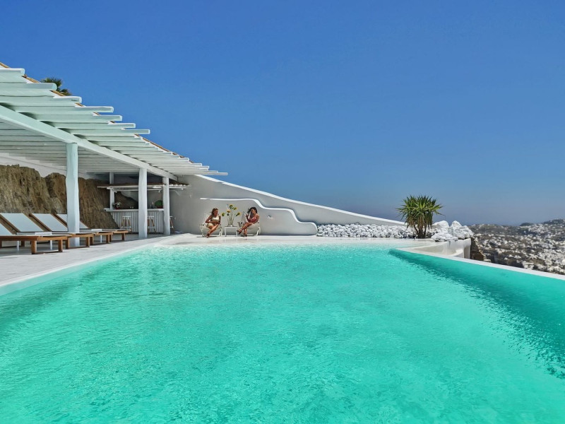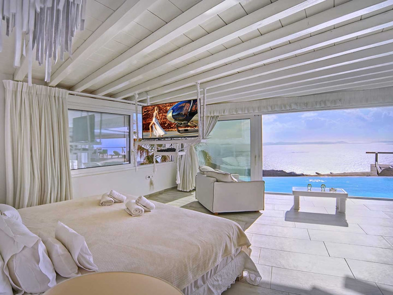 Panoramic Mykonos Luxury VillasEmbraced by the spectacular rocky coastal scenery of the picturesque area of Kastro in Mykonos Island in Greece, Zinas Mykonos luxury villas epitomize the ultimate luxury living experience while providing the highest degree of privacy and indulgence.Miraculously set amidst the emerald waters of the sea and the azure sky these utterly seductive Mykonos luxury Villas offer a heavenly retreat for couples seeking a one of a kind experience in some of the most exclusive private luxury villa rentals near Mykonos town.Idyllically situated on the top of the hill Zinas Villas in Mykonos seem to reach for the sky whilst enjoying commanding panoramic vistas of the endless horizon and the enchanting Mykonos town of the magnificent insular complex of the Cyclades in Greece.All luxury villa rentals with pool have been crafted and decorated to high standards of luxury and style with unique natural handmade furniture and impressive irreplaceable adornments meticulously collected from all heavens on earth by the owner himself, the well-known Greek fashion designer Panos Zinas, who also owns a glorious fashion boutique in Mykonos town supplying luxurious gowns, day dresses and beachwear.Unrivaled Luxury Villas in Mykonos for CouplesNuzzled amidst the gracious nature the unrivaled Zinas luxury villas in Mykonos harmoniously blend into the miraculous seascape providing an intimate hideaway for couples and discerning travelers in search for a heaven on earth. Brilliantly positioned in the scenic area of Kastro near Mykonos town these exclusive private villa rentals with pool have been brilliantly appointed and designed to ensure a prestigious holiday experience for all treasured guests.Zinas luxury accommodation in Mykonos offers the perfect setting for indulging holidays, exclusive honeymoons and romantic interludes in the captivating island of Mykonos of the Cyclades islands cluster in Greece.Couples can succumb to the serenity that beckons from the tranquility of the shimmering sea, immerse in the Jacuzzi as the sunset slowly fades over the horizon and relish a candle light dinner under the veil of stars as the sweet sea breeze gently caresses their face.