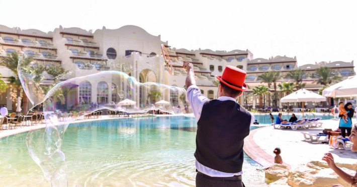 Oaspeții se pot destinde savurand o băutură la barul de la piscină sau la barul de pe plajă, care oferă vedere uimitoare. Zona mare de piscină cuprinde 4 piscine diferite, inclusiv una prevăzută cu 5 tobogane de apă pentru adulti si o piscină pentru copii cu 4 tobogane. Sunt disponibile prosoape de plajă și șezlonguri.